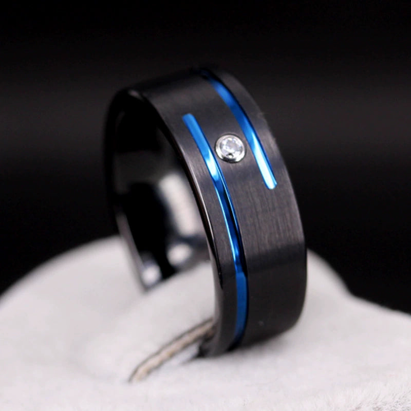 Fashion Black Drip Groove Diamond Stainless Steel Ring