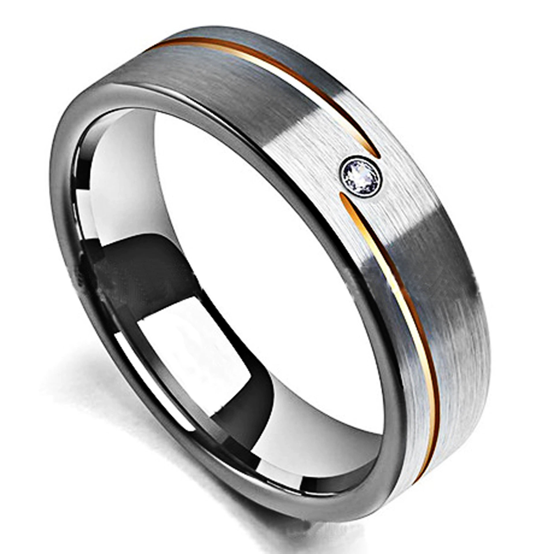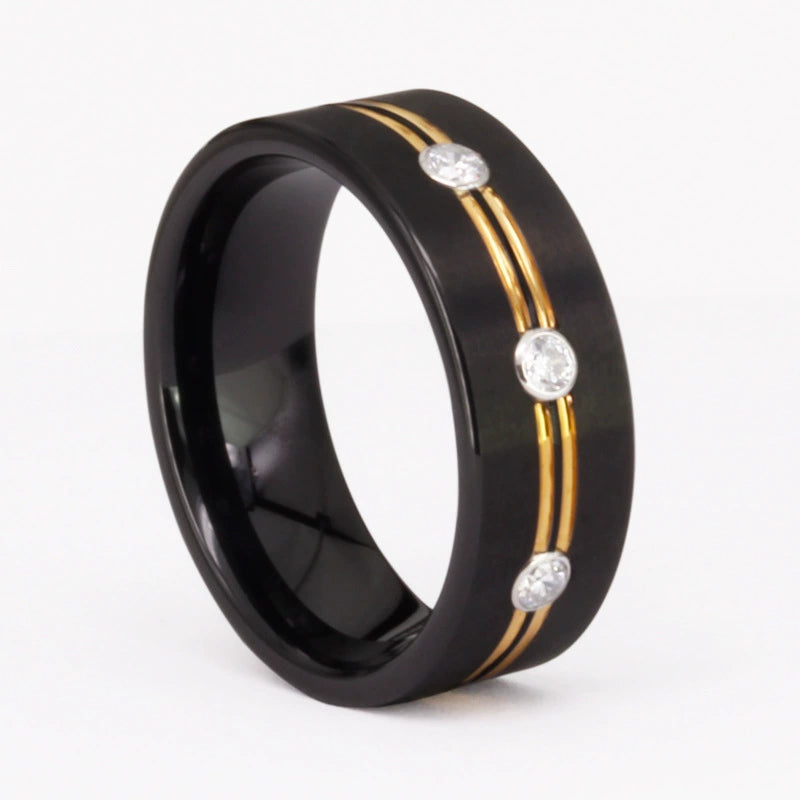 Fashion Creative Groove Diamond Stainless Steel Two Color Ring