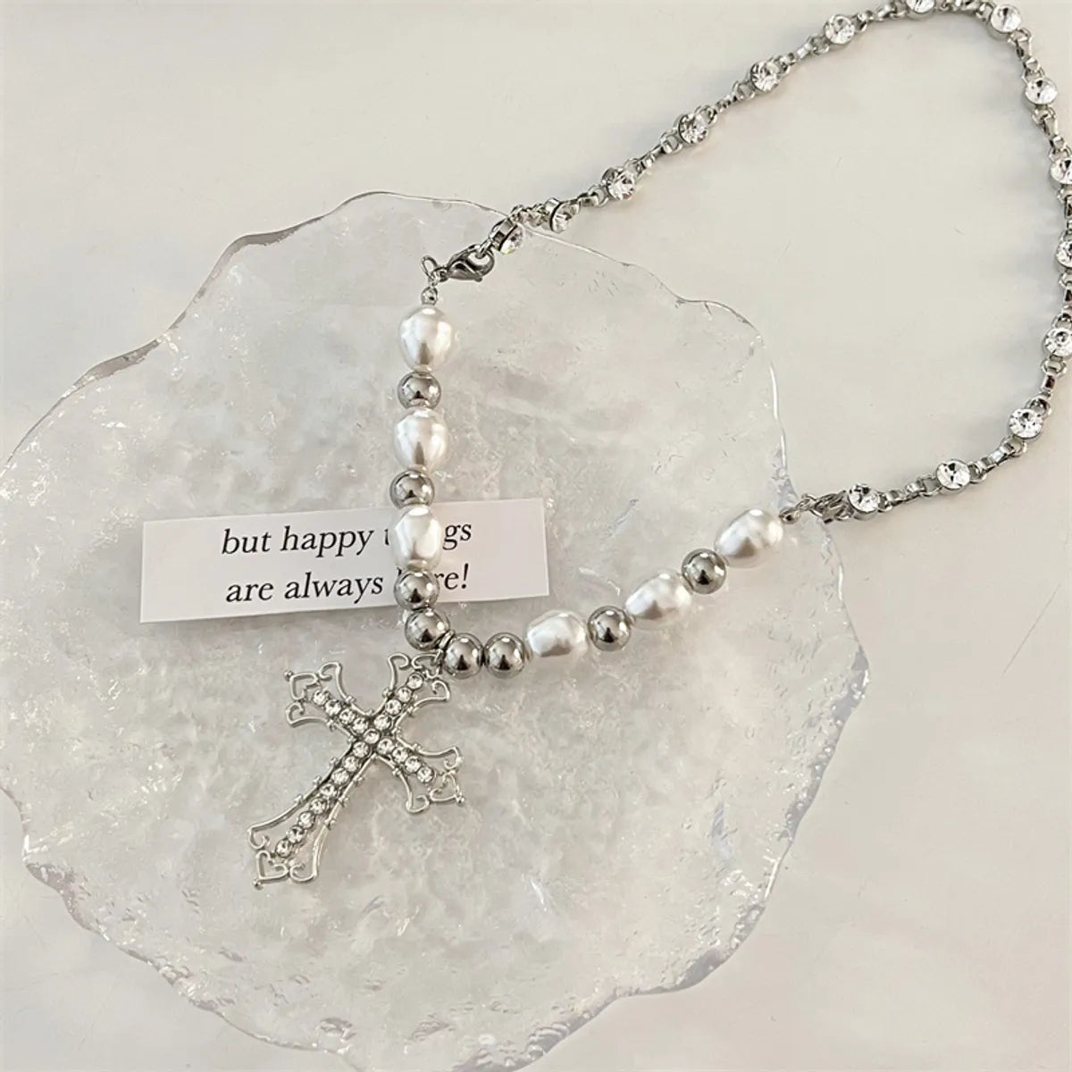Fashion Cross Pearl Imitation Pearl Steel Aluminum-magnesium Alloy Women's Necklace