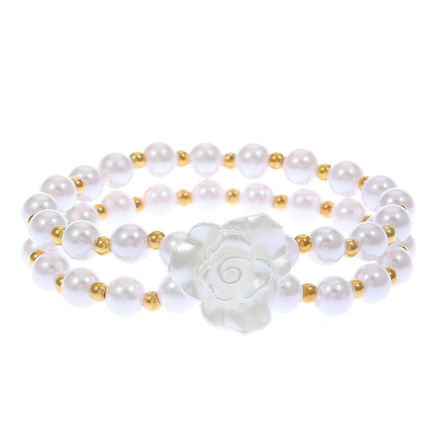 Fashion Female Retro Multilayer Alloy Imitation Pearl Flower Geometric Bracelet With Electroplating