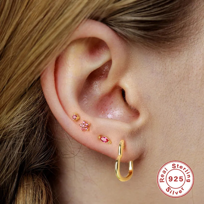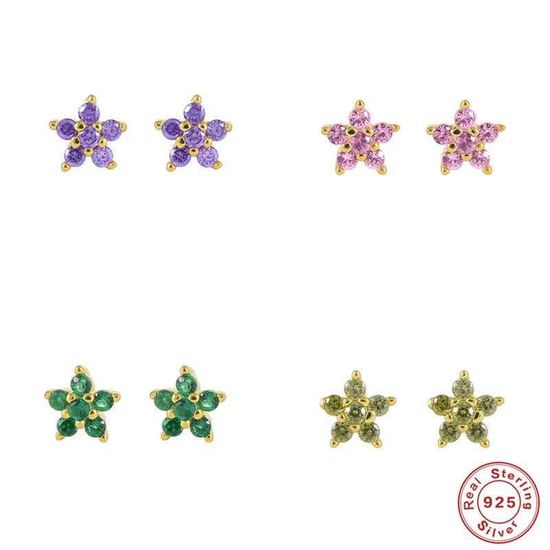 Fashion Flower Sterling Silver Zircon Ear Studs 1 Pair