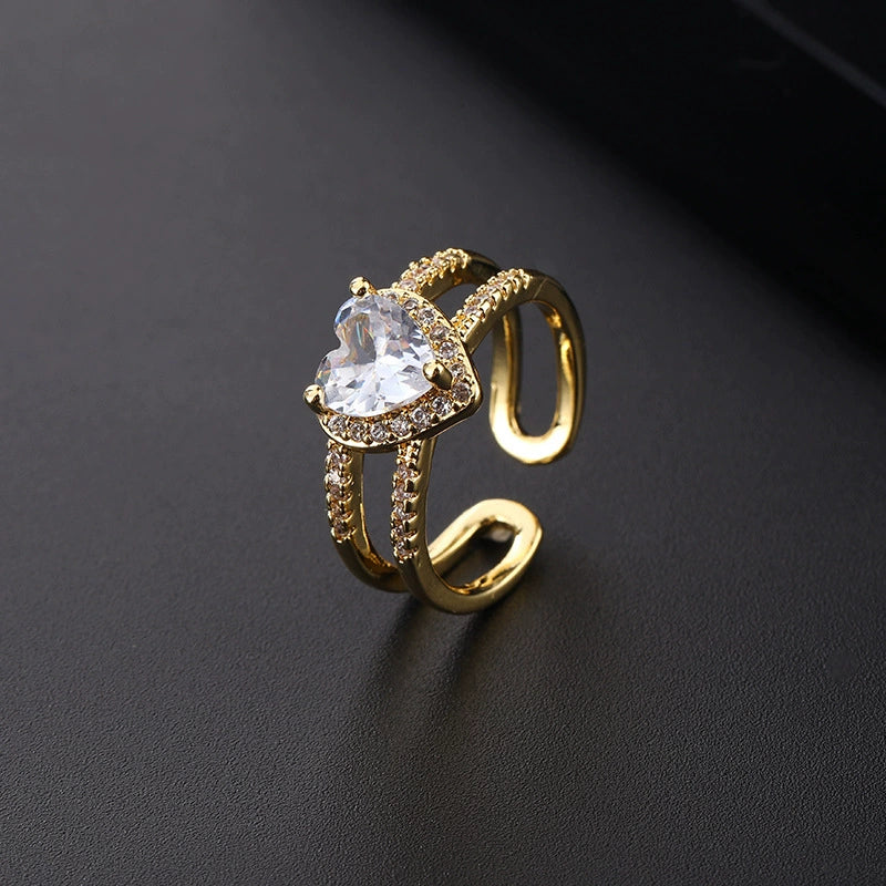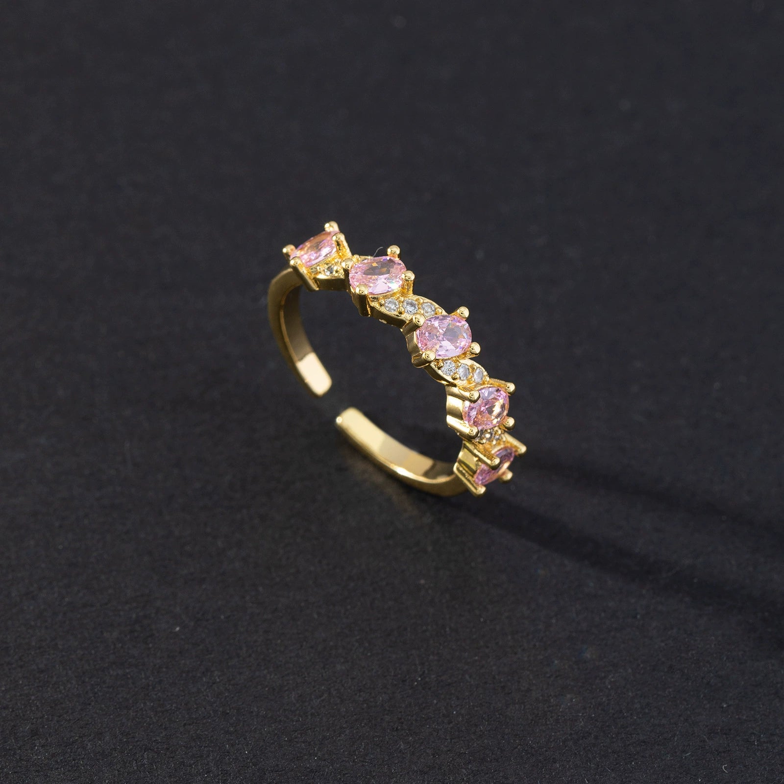 Fashion Geometric Colorful Zircon Open Ring For Women Copper Electroplated Light Luxury Niche Minimalist