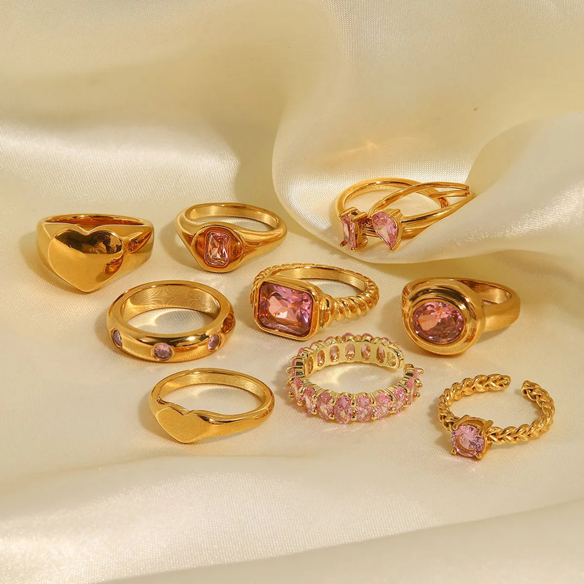 Fashion Geometric Stainless Steel Plating Zircon Gold Plated Rings