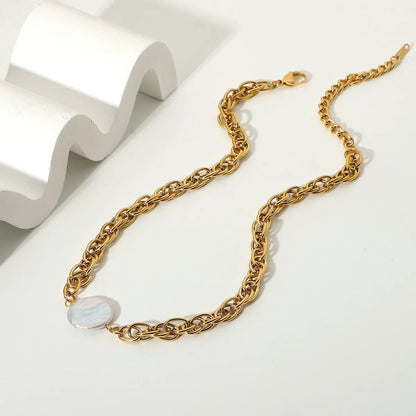Fashion Gold-plated Stainless Steel Thick Chain Pearl Necklace