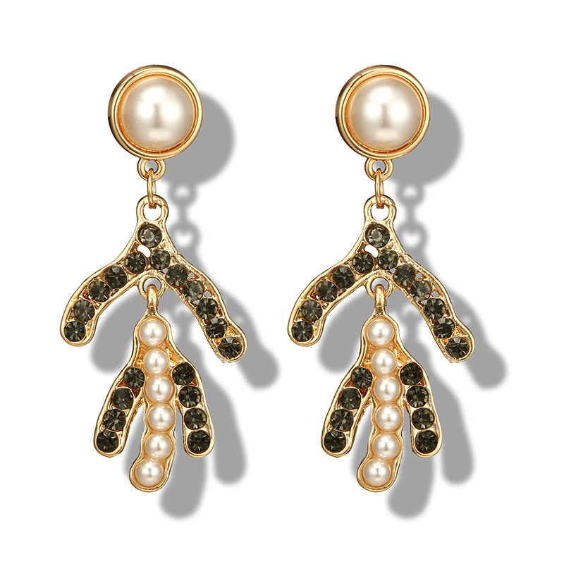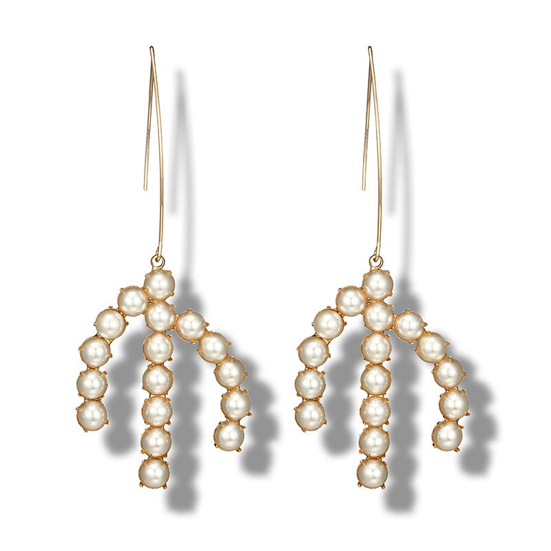 Fashion Pearl Five-pointed Star Branch Snowflake Tassel Earrings