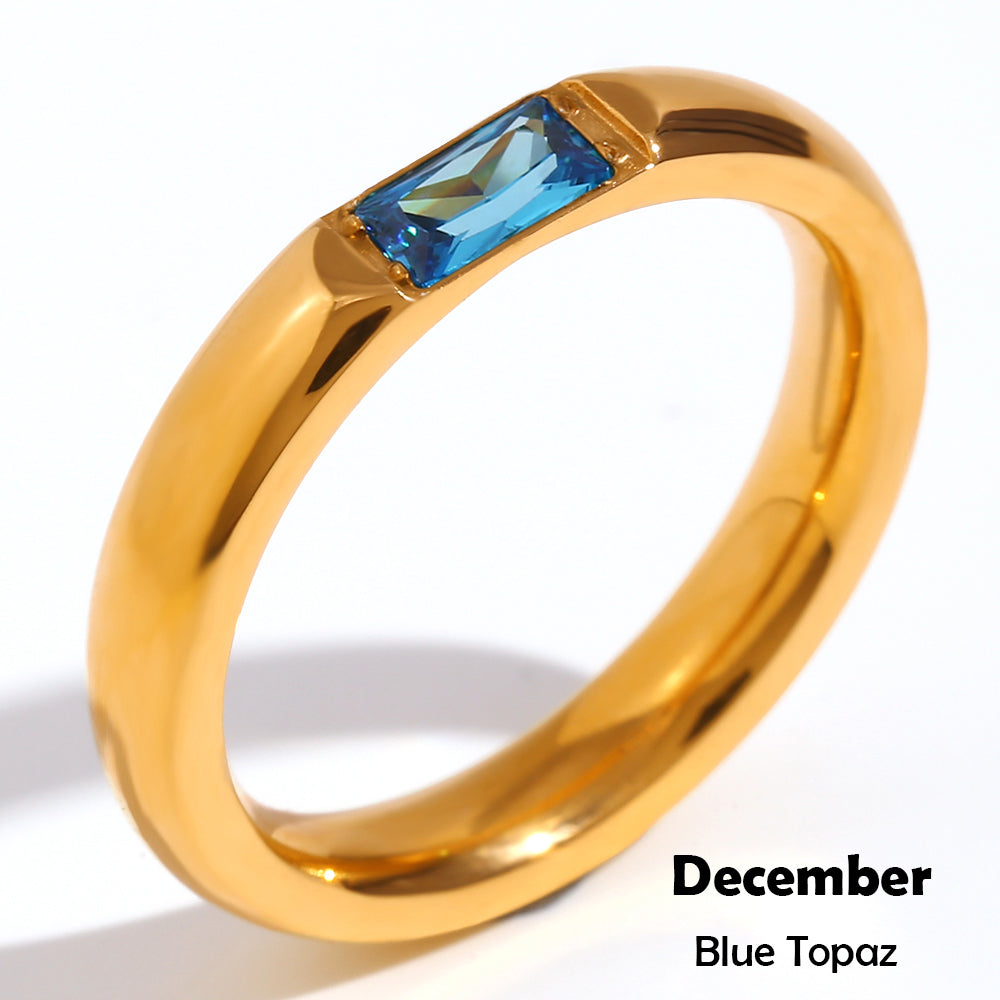 Fashion Rectangle Stainless Steel Plating Birthstone Zircon Rings