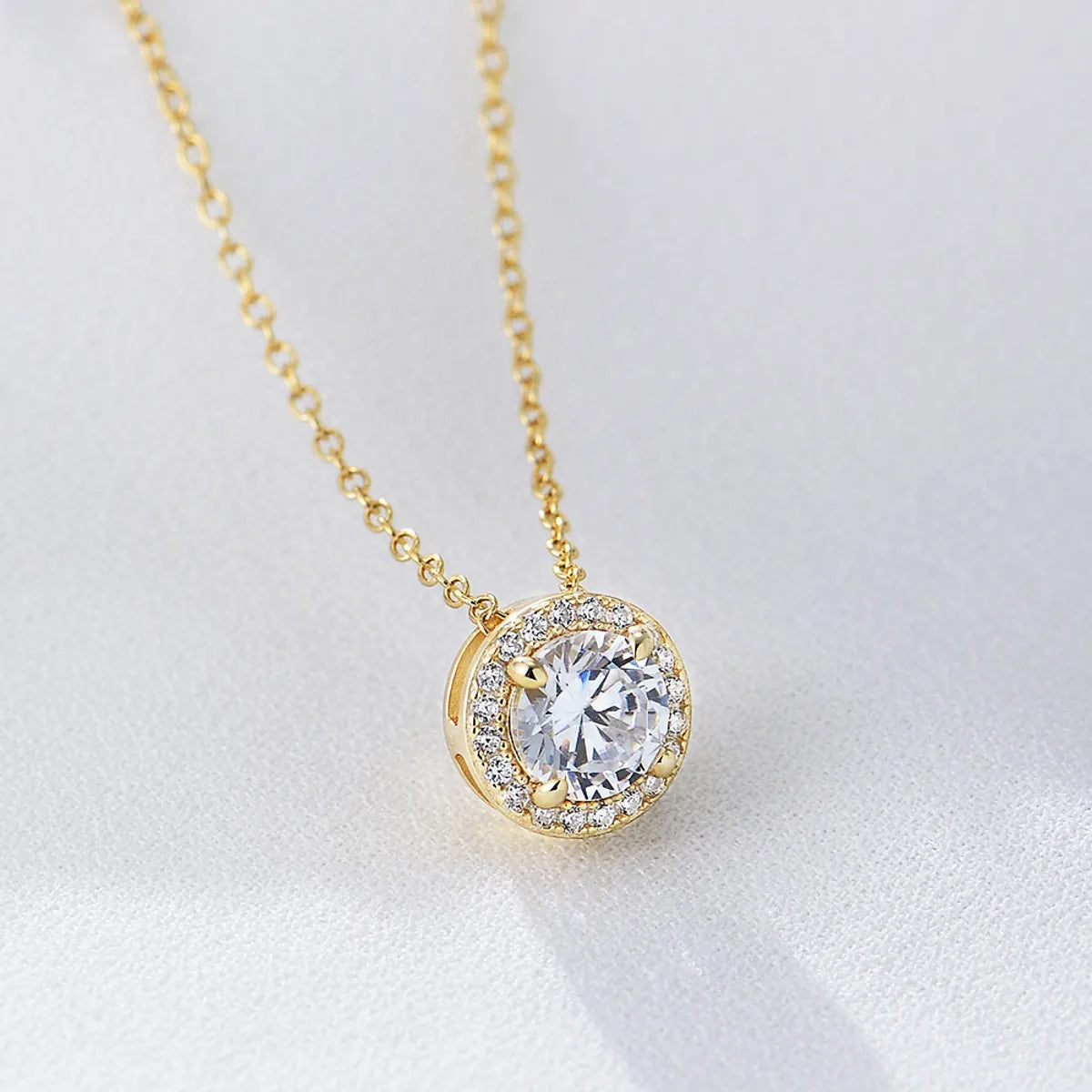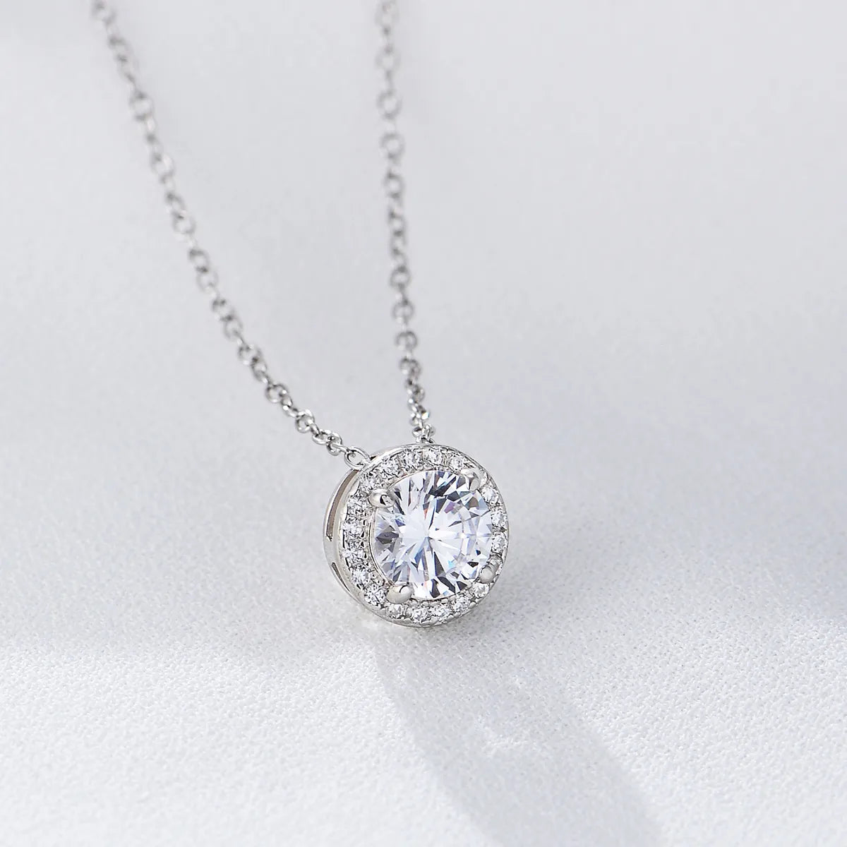 Fashion Round Sterling Silver Plating Zircon Pendant Necklace