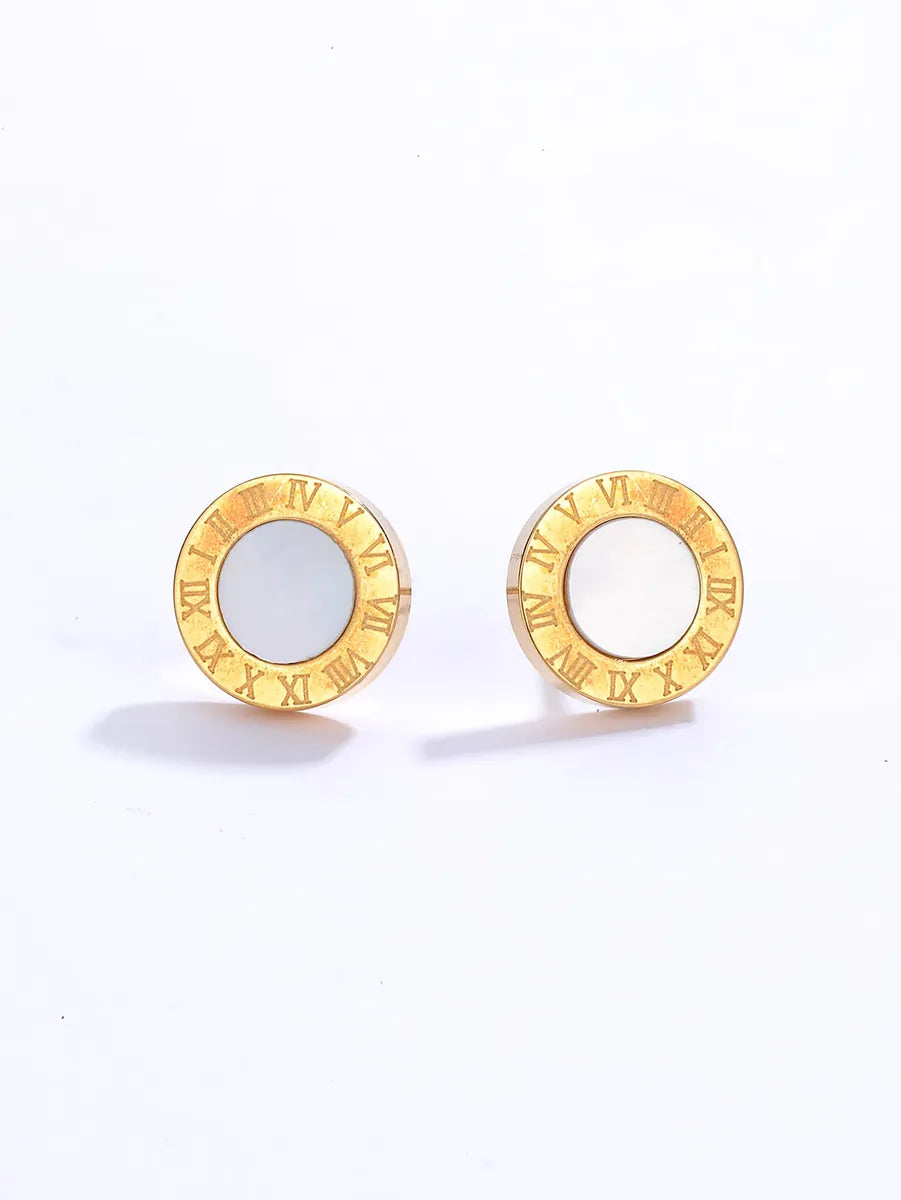 Fashion Simple Ornament Electroplated 18 Golden Round Roman Digital Stainless Steel Stud Earrings
