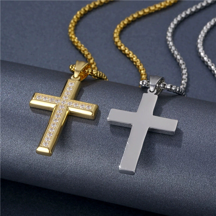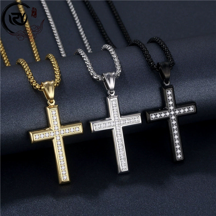 Fashion Titanium Steel And Stainless Steel Jewelry With Geometric Diamond Cross Sweater Necklace