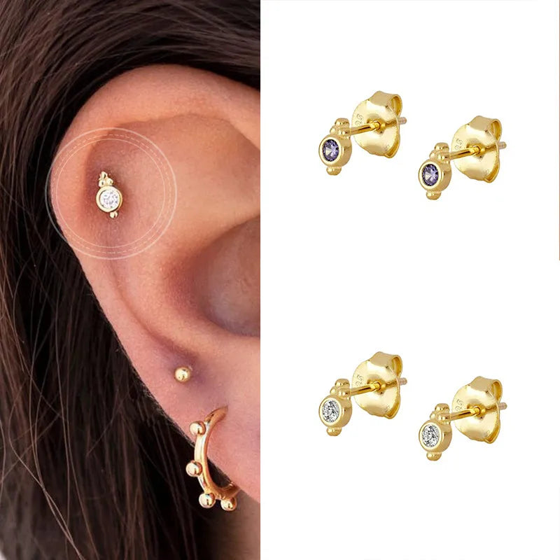Geometric Round Inlaid Zircon Personalized Lighting Style Earrings Jewelry