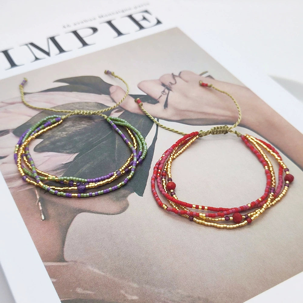 Girls Handwoven Glass And Glaze Geometric Beaded Bracelet