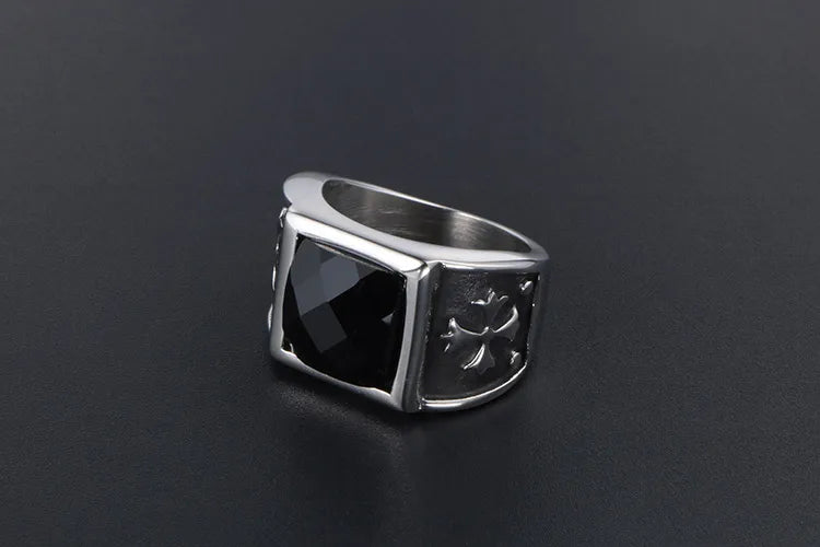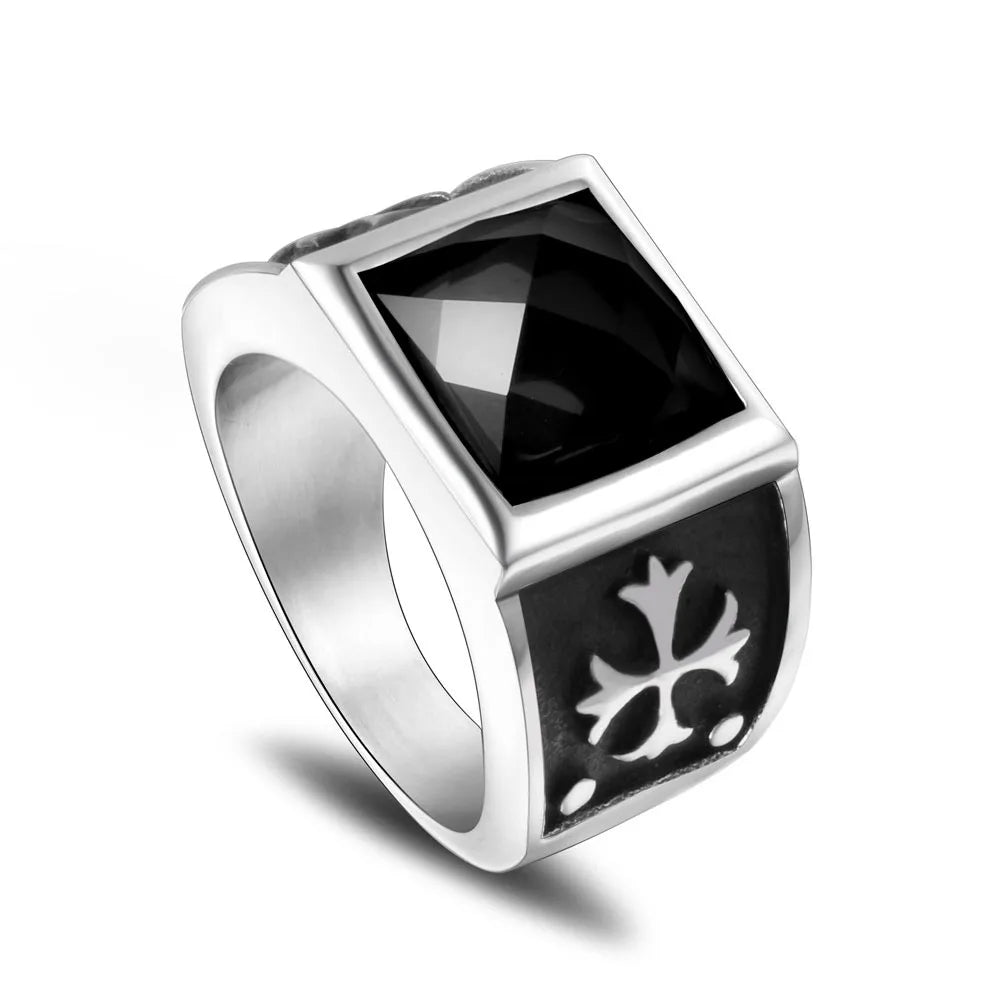Hip-Hop Punk Cool Style Cross 304 Stainless Steel Polishing Inlay Zircon Men'S Rings