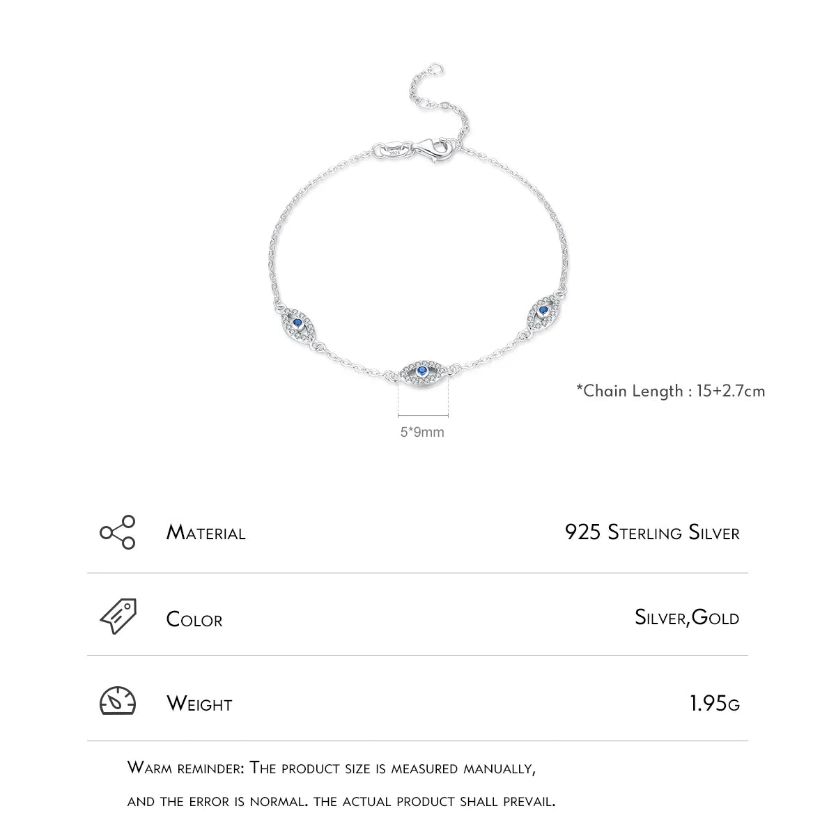 Ig Style Devil's Eye Sterling Silver Plating Inlay Zircon Rhodium Plated Bracelets