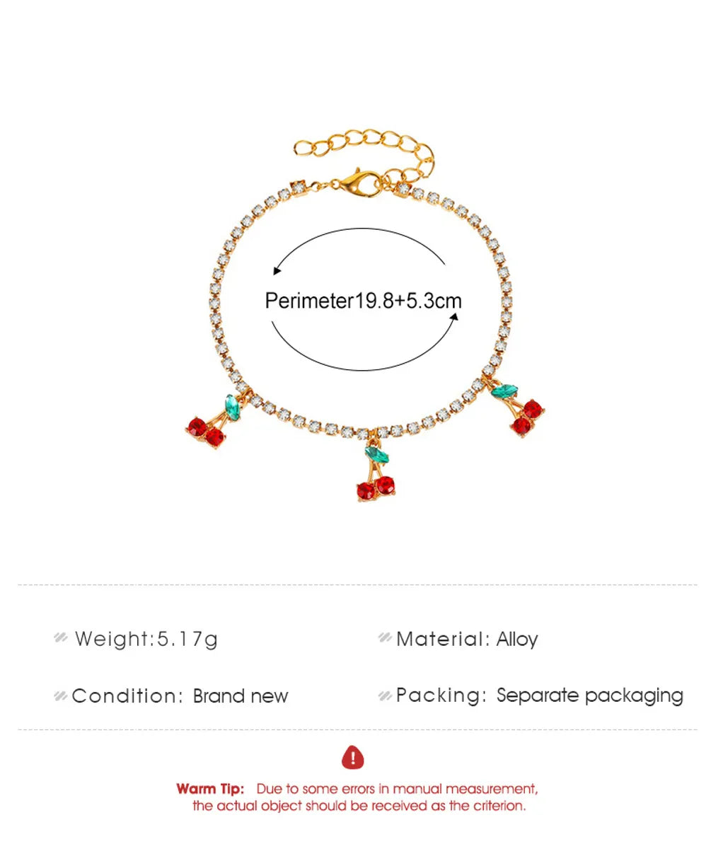 IG Style Shiny Cherry Alloy Inlay Rhinestones Women'S Anklet