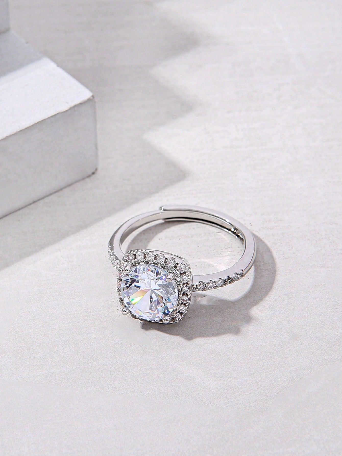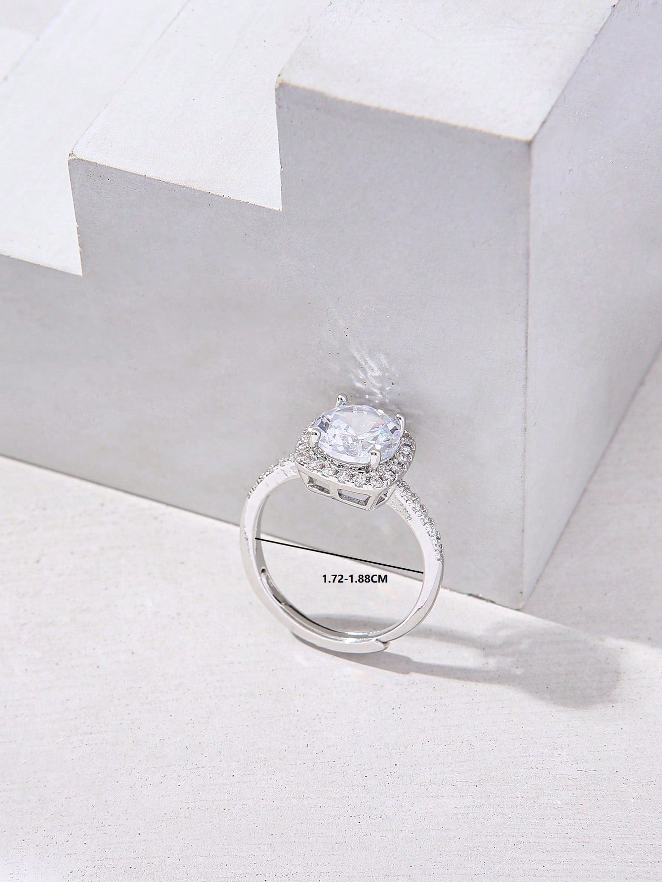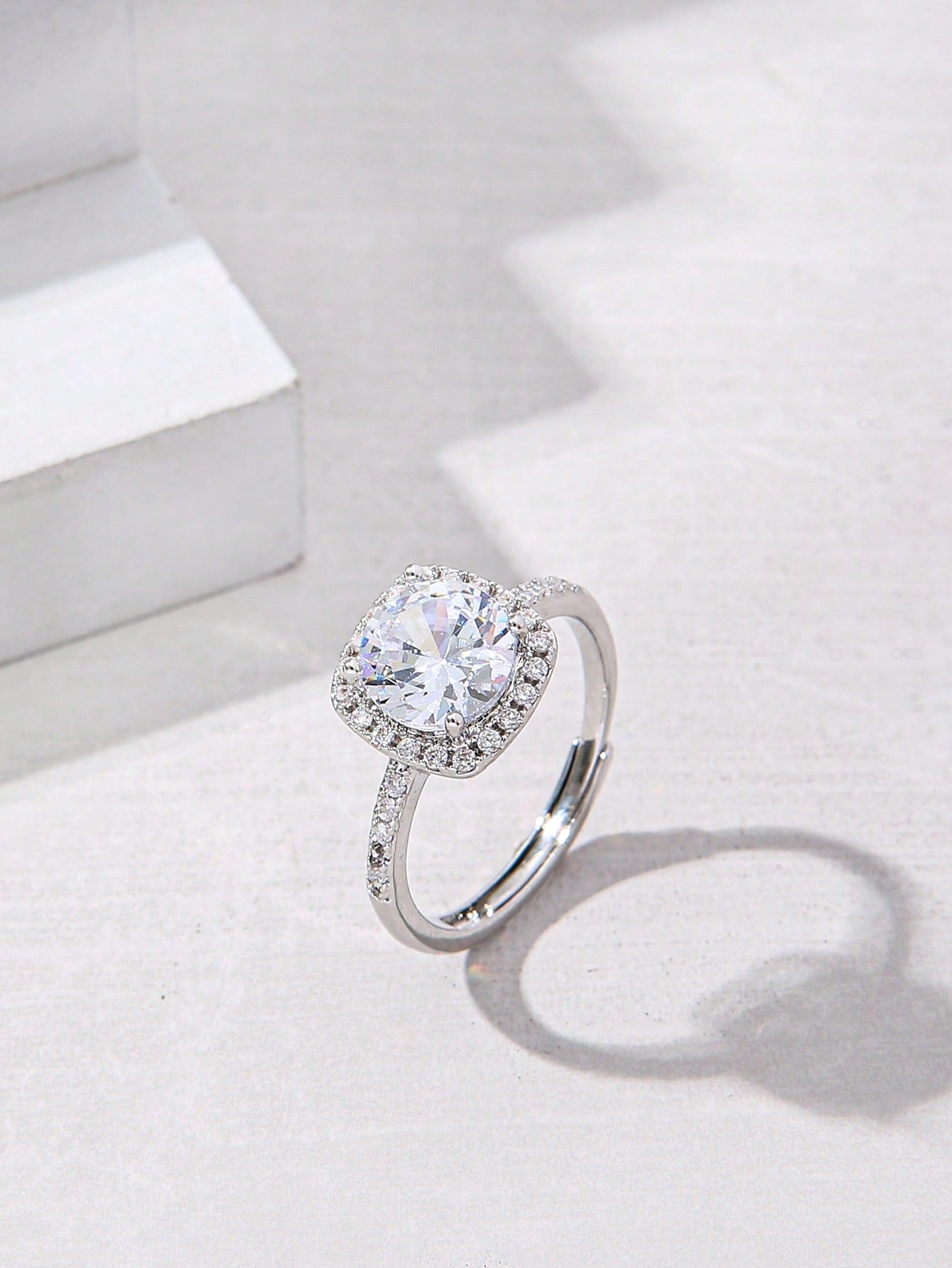 Ig Style Shiny Square Rectangle Copper Plating Inlay Zircon White Gold Plated Adjustable Ring