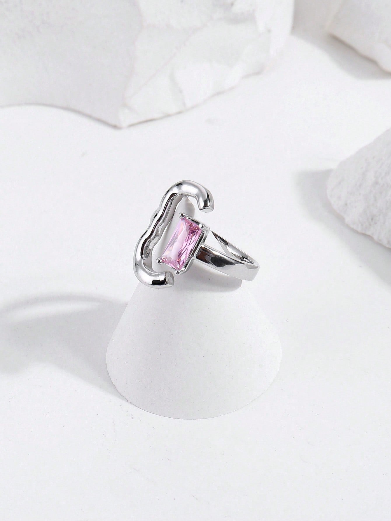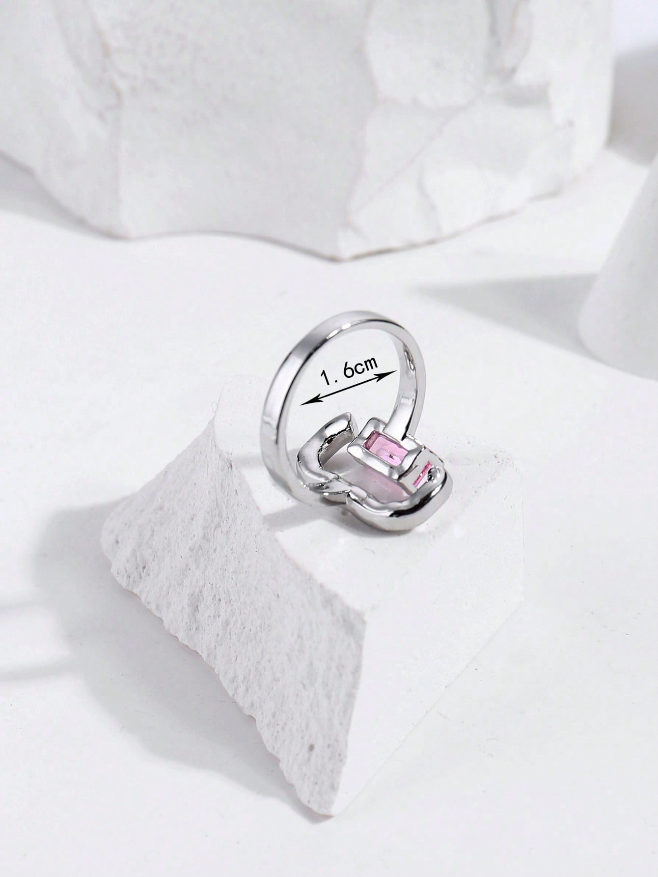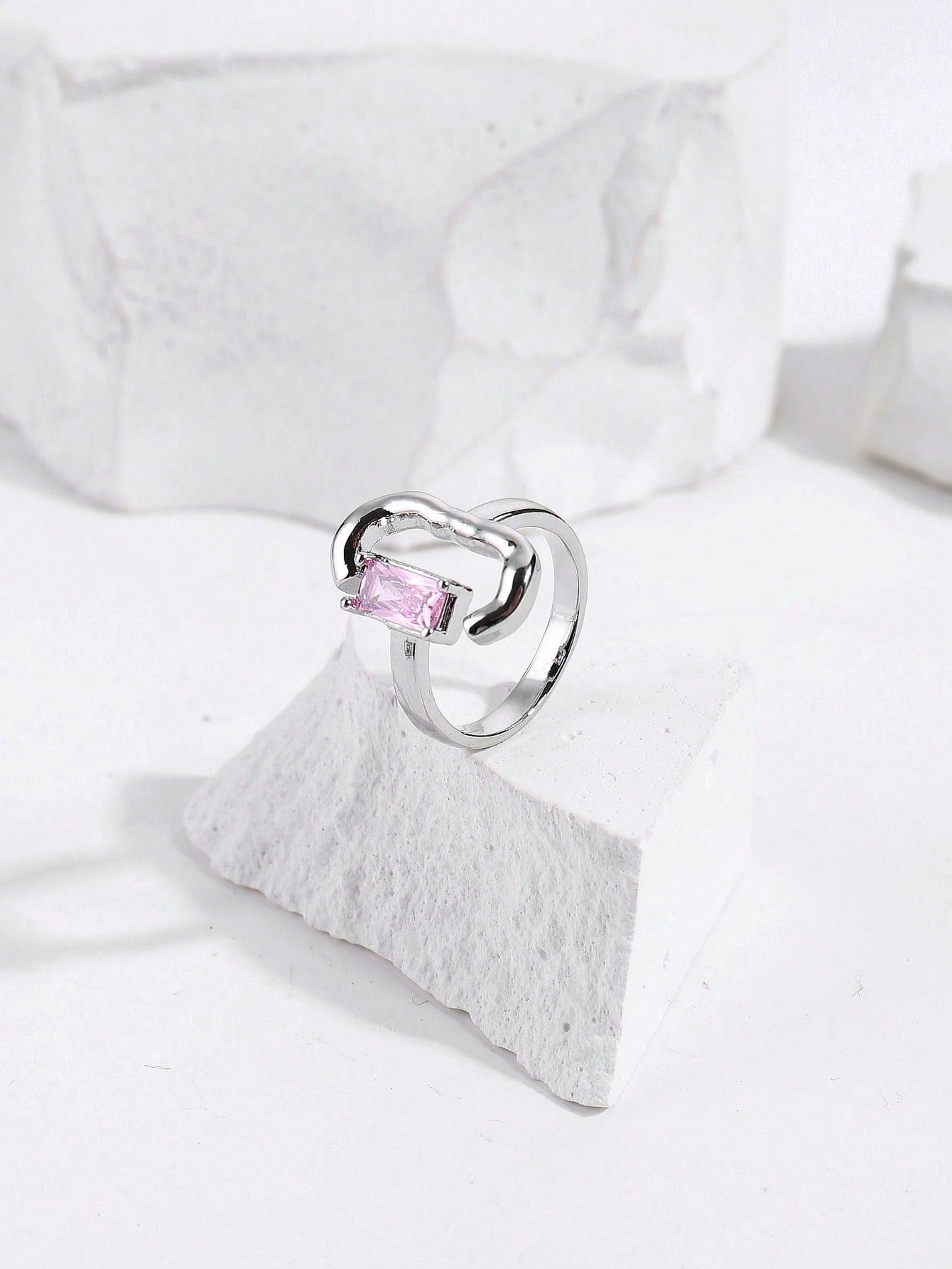 Ig Style Shiny Square Rectangle Copper Plating Inlay Zircon White Gold Plated Adjustable Ring