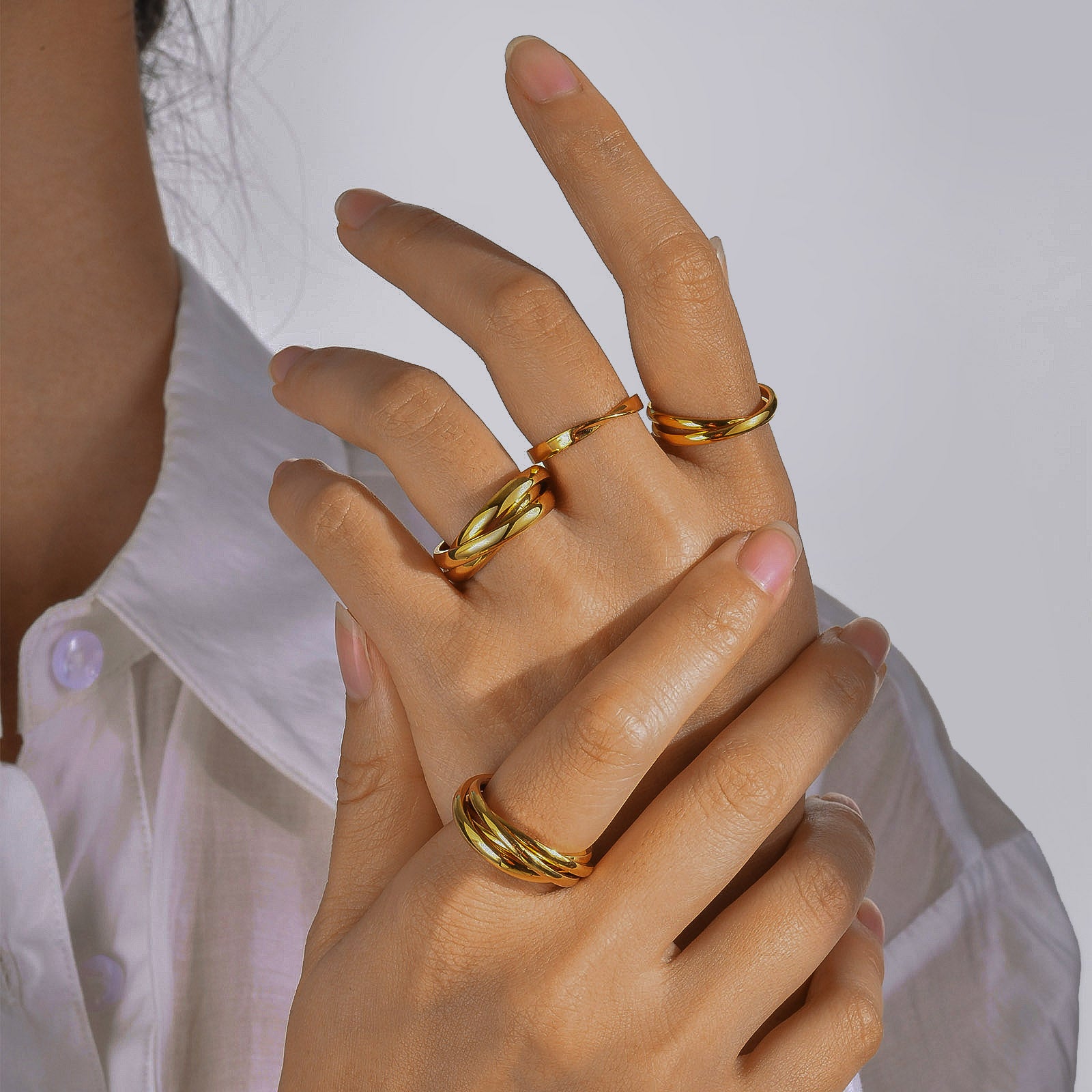 Ig Style Simple Style Solid Color Stainless Steel Plating 18k Gold Plated Rings