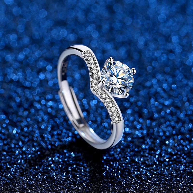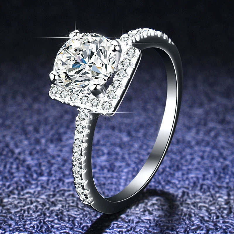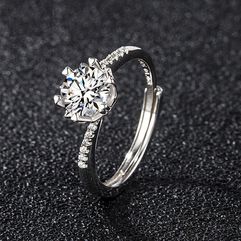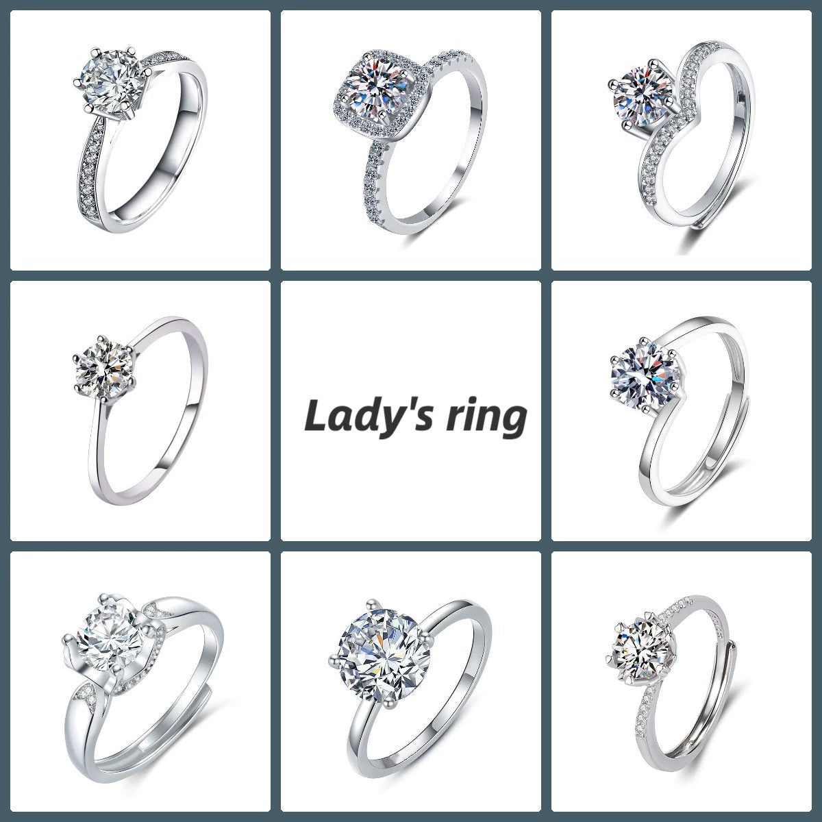 Imitation Moissanite Ring Simulation Diamond Ring Female Opening Adjustable Zircon Ring Light Luxury Copper Ring Geometric Design