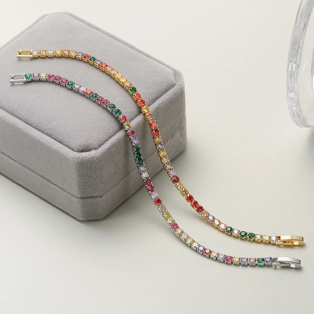 Ins Style Colorful Copper Plating Inlay Zircon 18k Gold Plated Bracelets