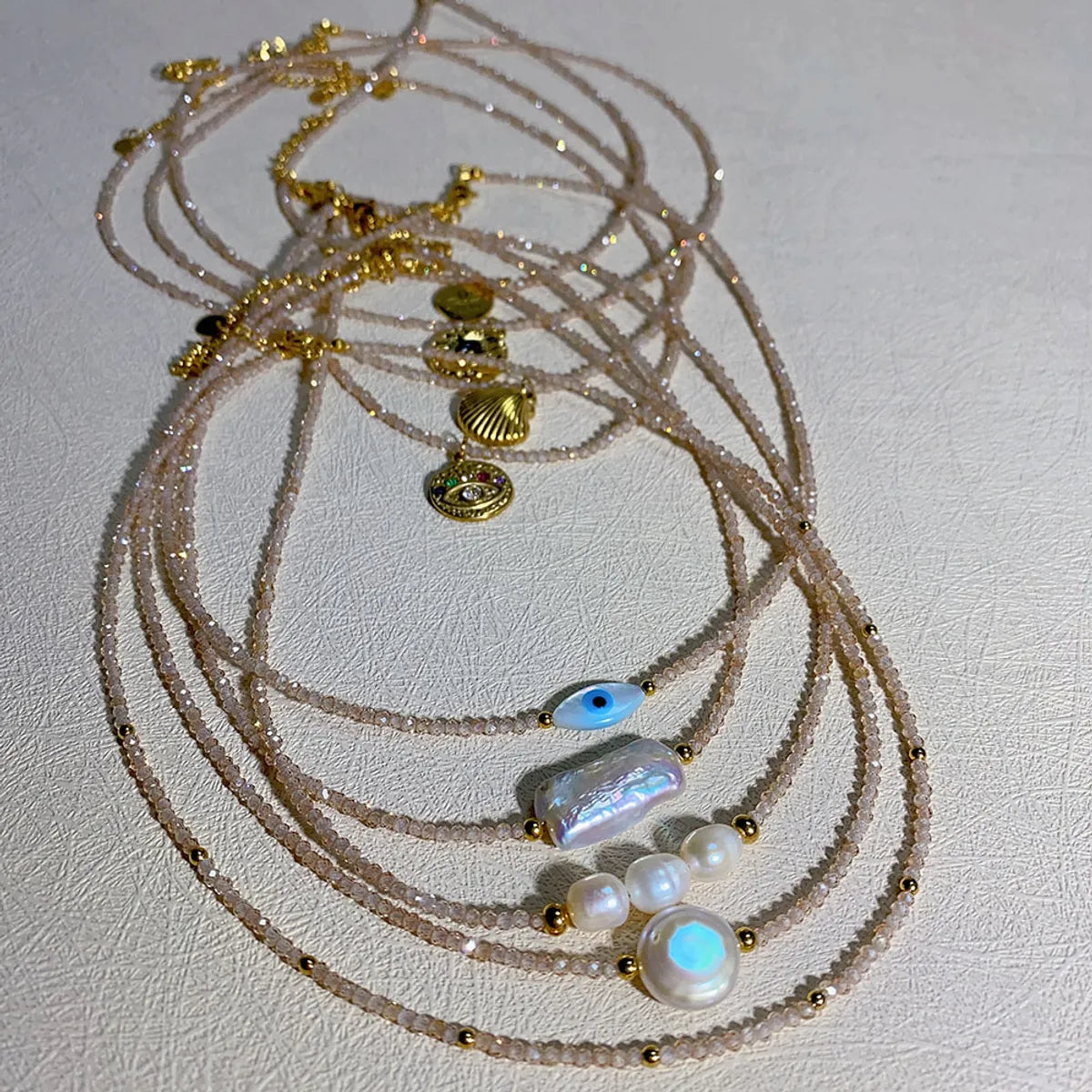 Ins Style Geometric Stainless Steel Artificial Crystal Inlay Natural Stone Pearl Shell Women's Necklace