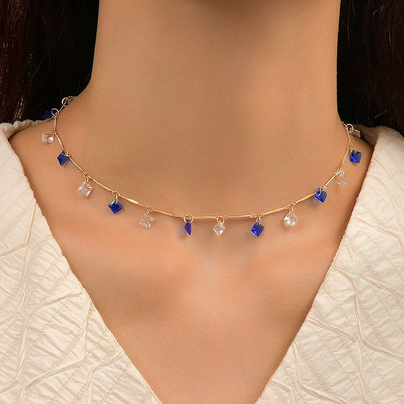 Jewelry Alloy Resin Drop Shape Beaded Necklace Electroplating