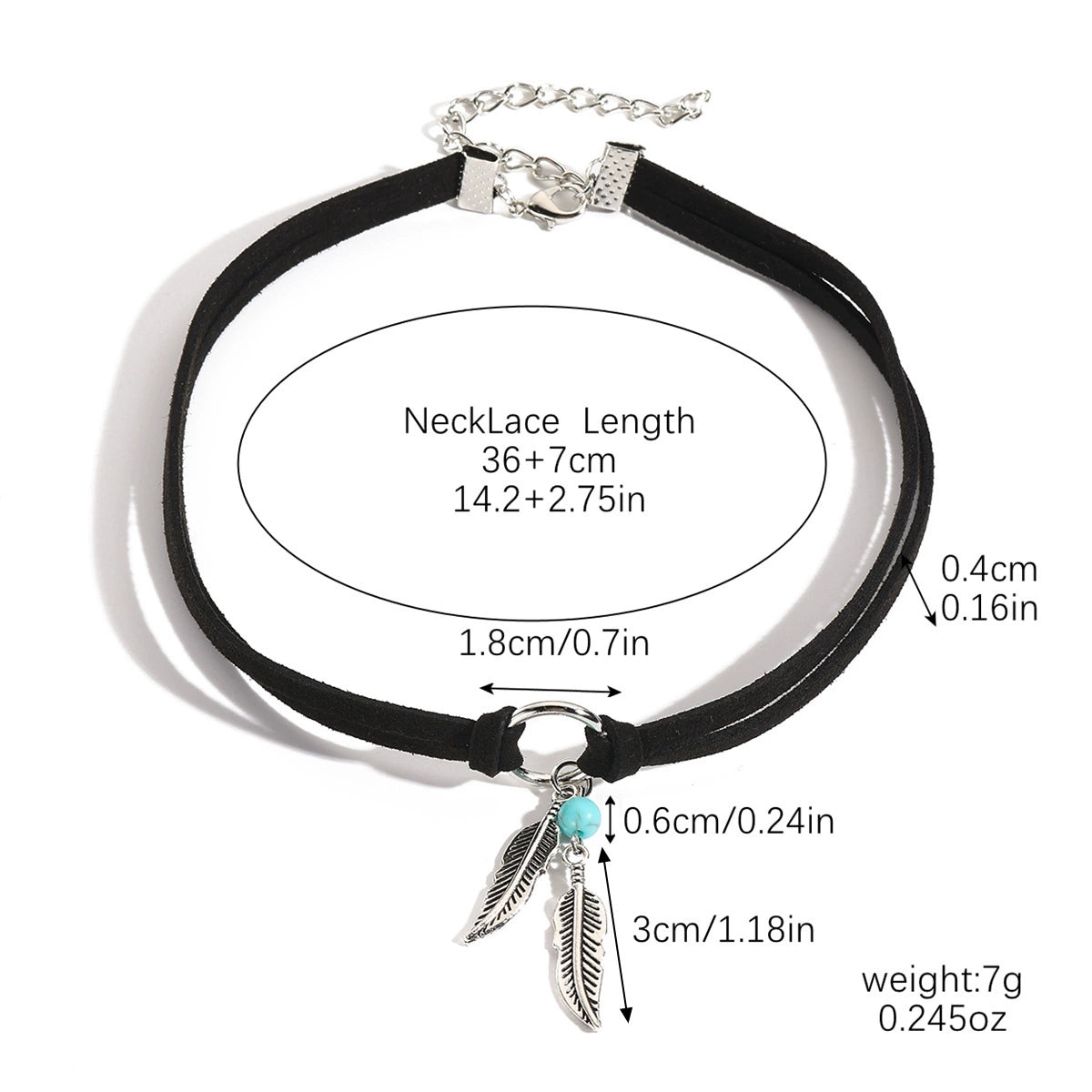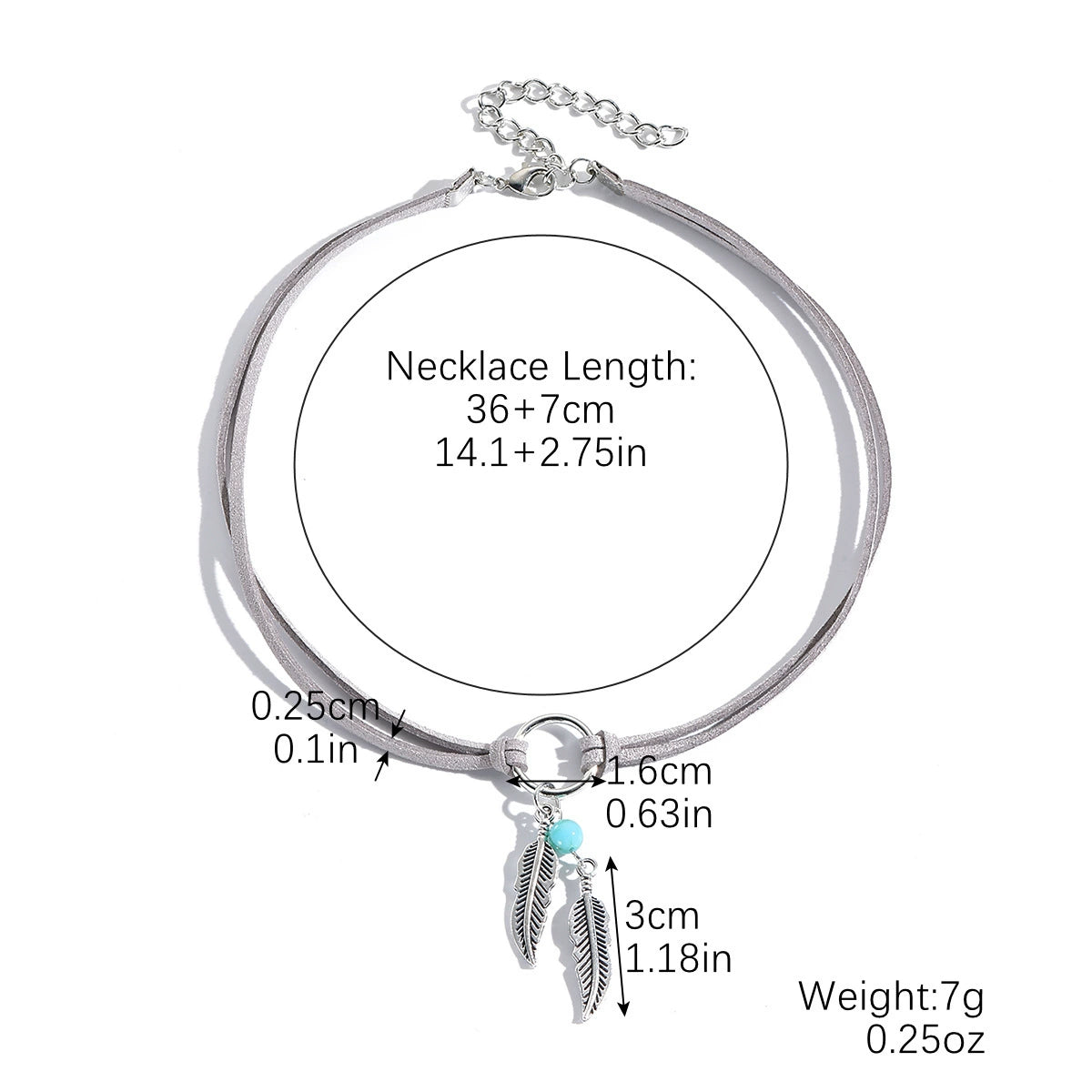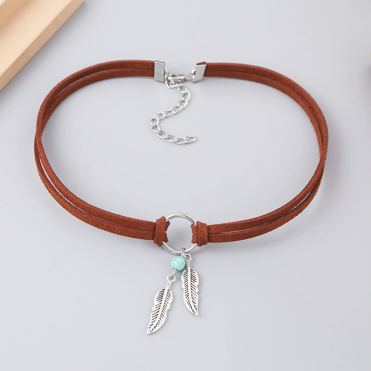 Jewelry Leather Alloy Leaves Geometric Round Electroplating Lady Choker Necklace