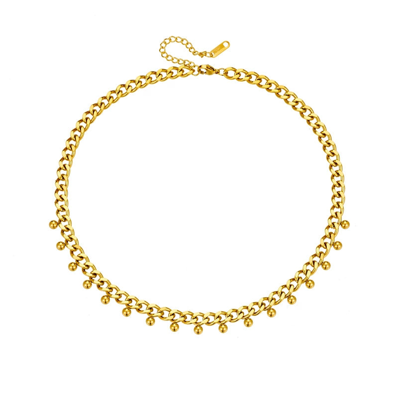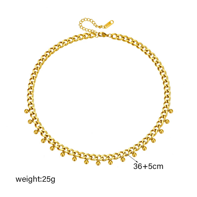 Jewelry Stainless Steel Chain With Gold Bead Pendant Electroplating Fashion Simple Design For Women