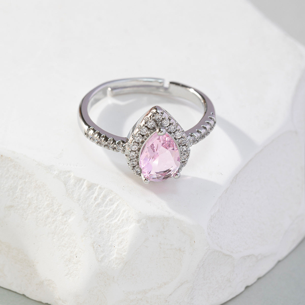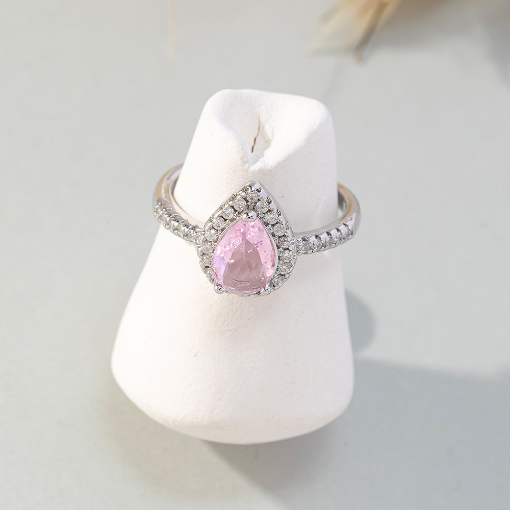 Korean Style Water Droplets Copper Inlay Zircon Open Rings