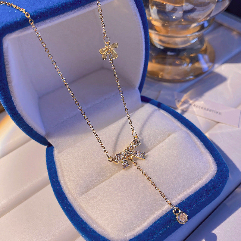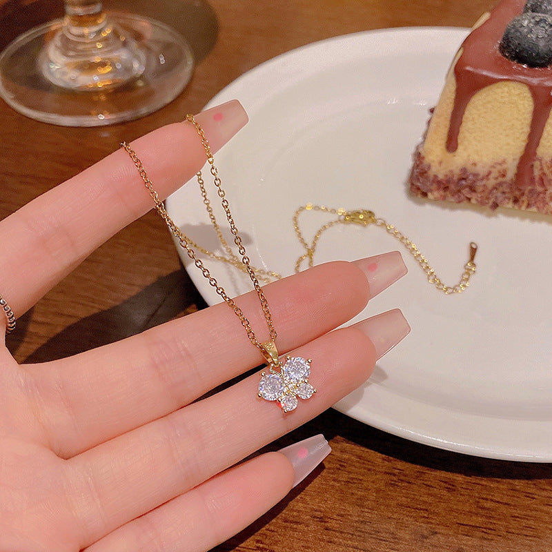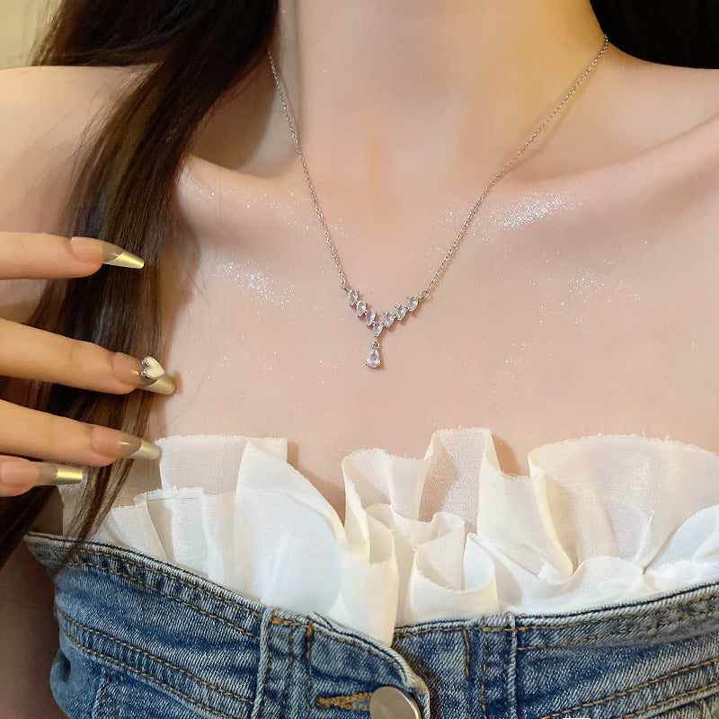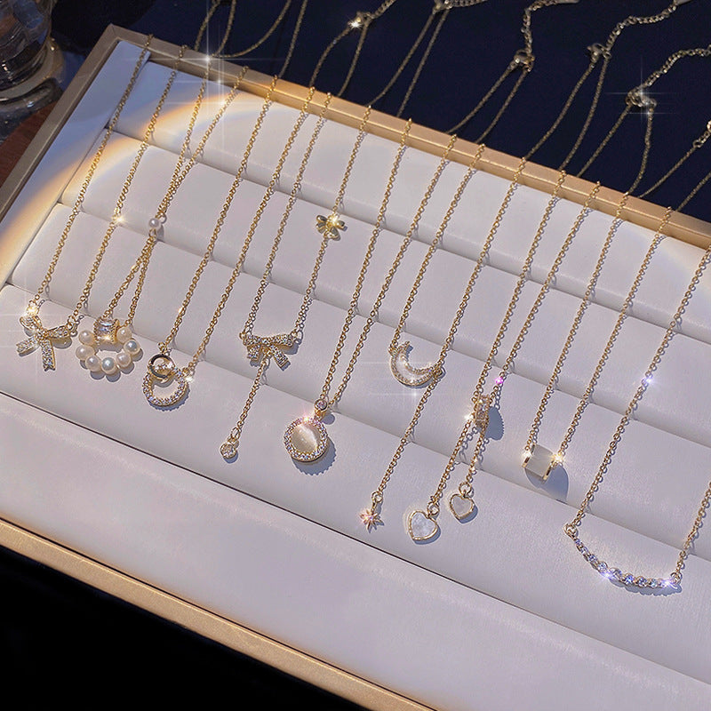 Korean version ins wind titanium steel necklace for girls' high-end sense versatile niche pearl collarbone chain pendant with jewelry wholesale