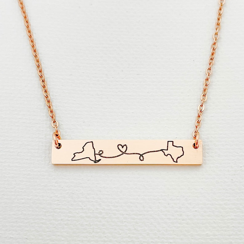 Long Distance Necklace, Location Jewelry, Long Distance Living Apart Necklace State Necklace Any Country California Texas Florida New York
