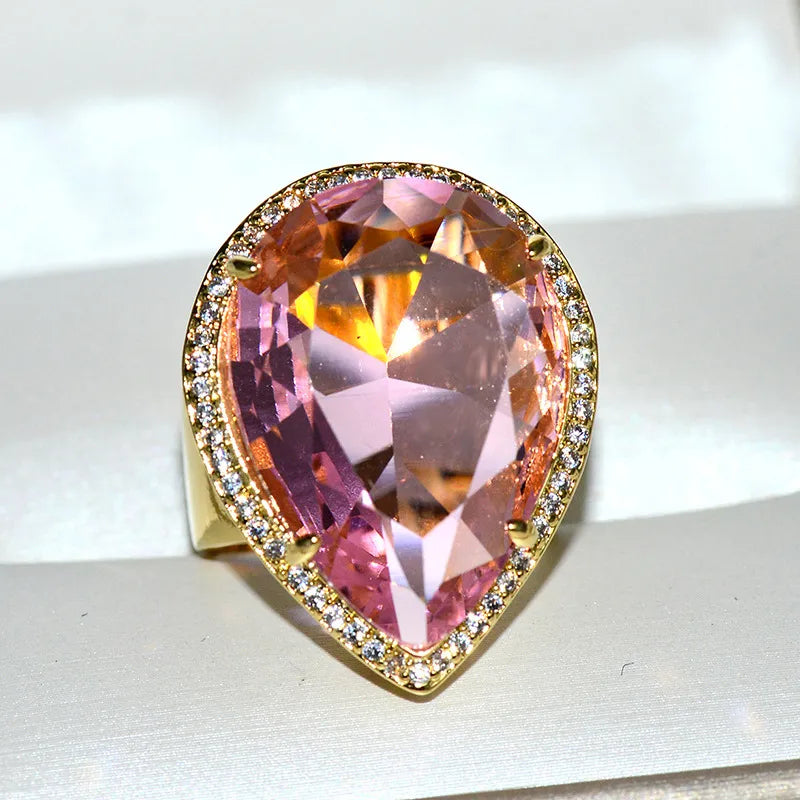 Luxurious Water Droplets Brass Inlay Crystal Rings