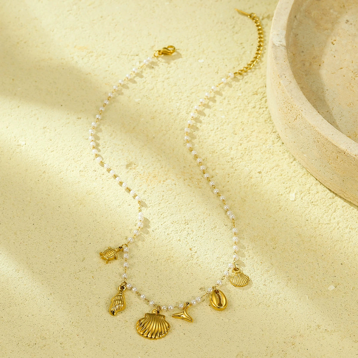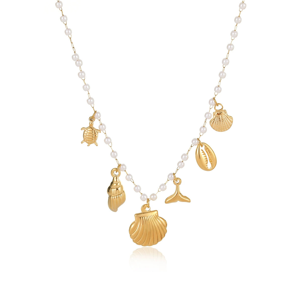 Marine Series Pearl Stainless Steel Pendant Necklace With Starfish Conch Shell Fashion Electroplating For Women