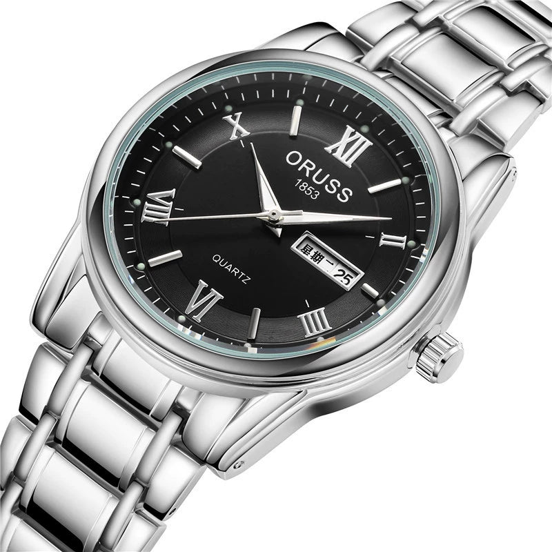 Men's Alloy Band Quartz Watch Business Luminous Double Calendar Casual Round Dial Watch