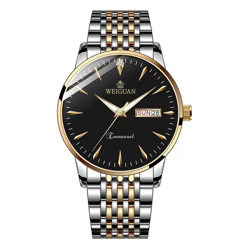 Men's Alloy Steel Business Style Round Dial Quartz Waterproof Luminous Double Calendar Watch