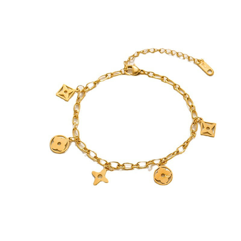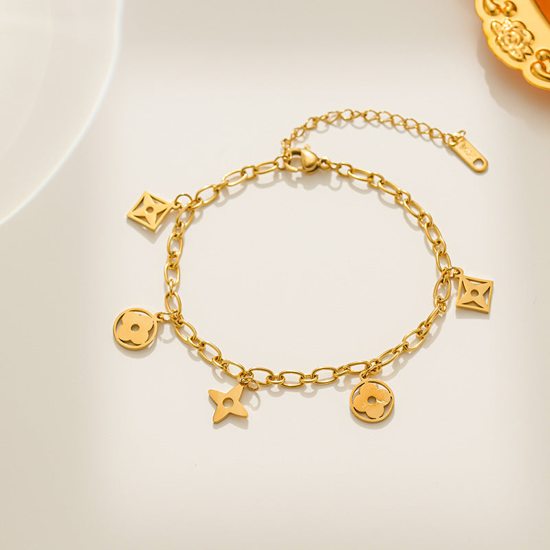 Moderate Luxury Women Rhombus Titanium Steel 18K Gold Plated Bracelets
