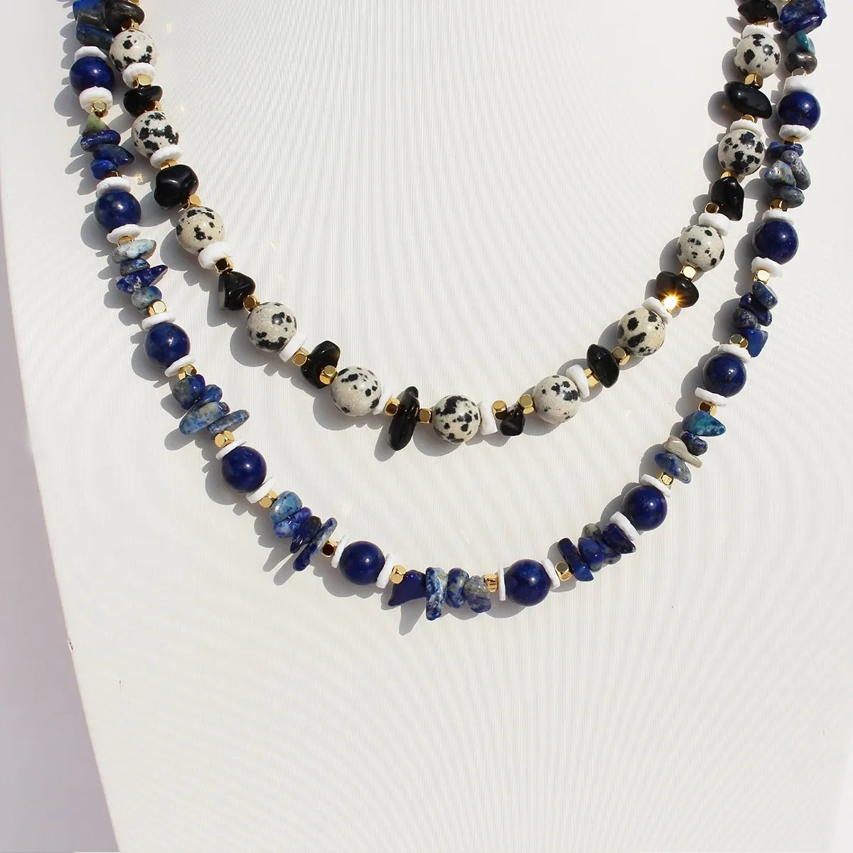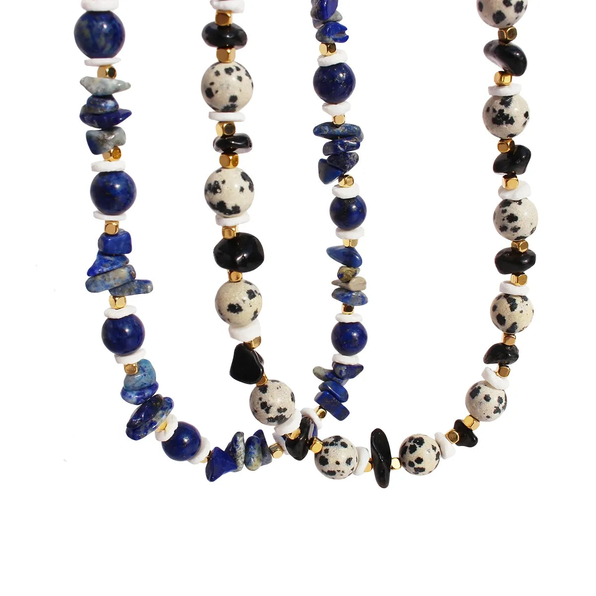 Modern Style Simple Style Classic Style Round Dalmatian Jasper Green Gold Brass 24K Gold Plated Necklace In Bulk