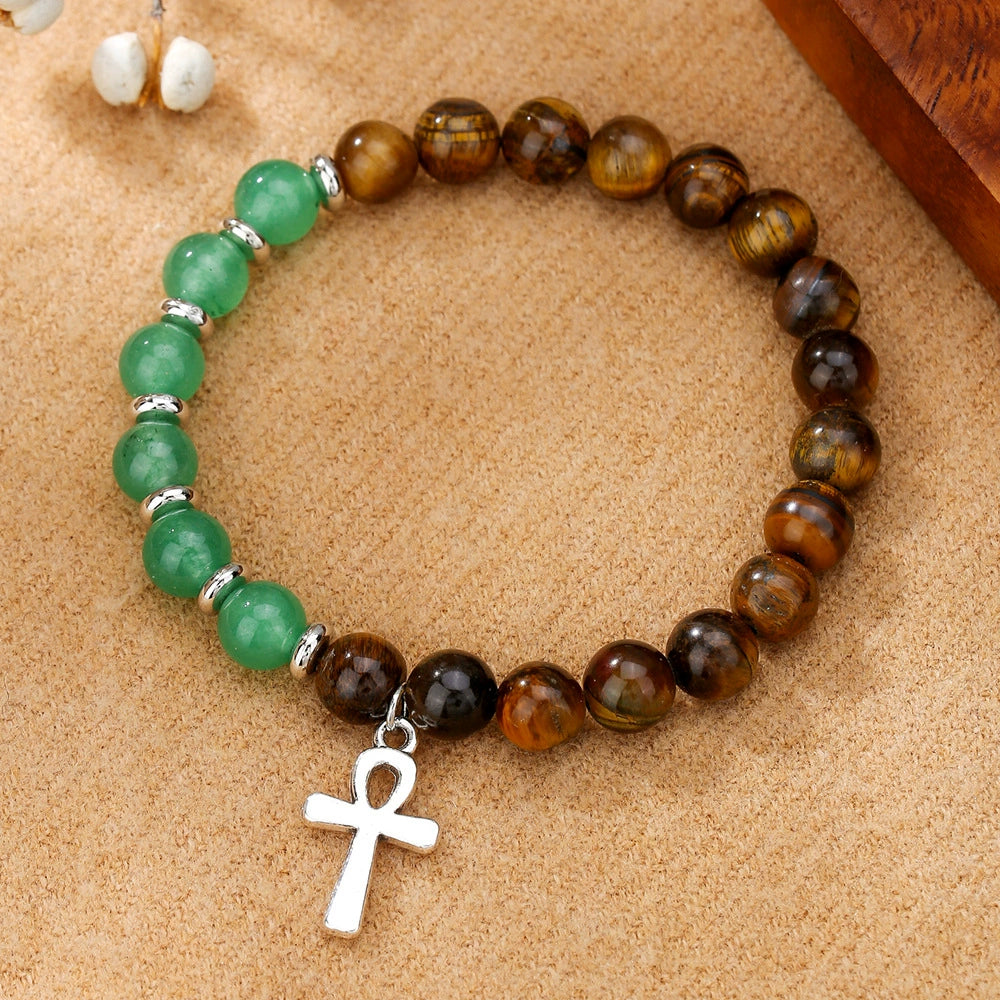 Natural Stone Crystal Bracelet Handmade Round Shape Unisex Tiger Eye Red Agate