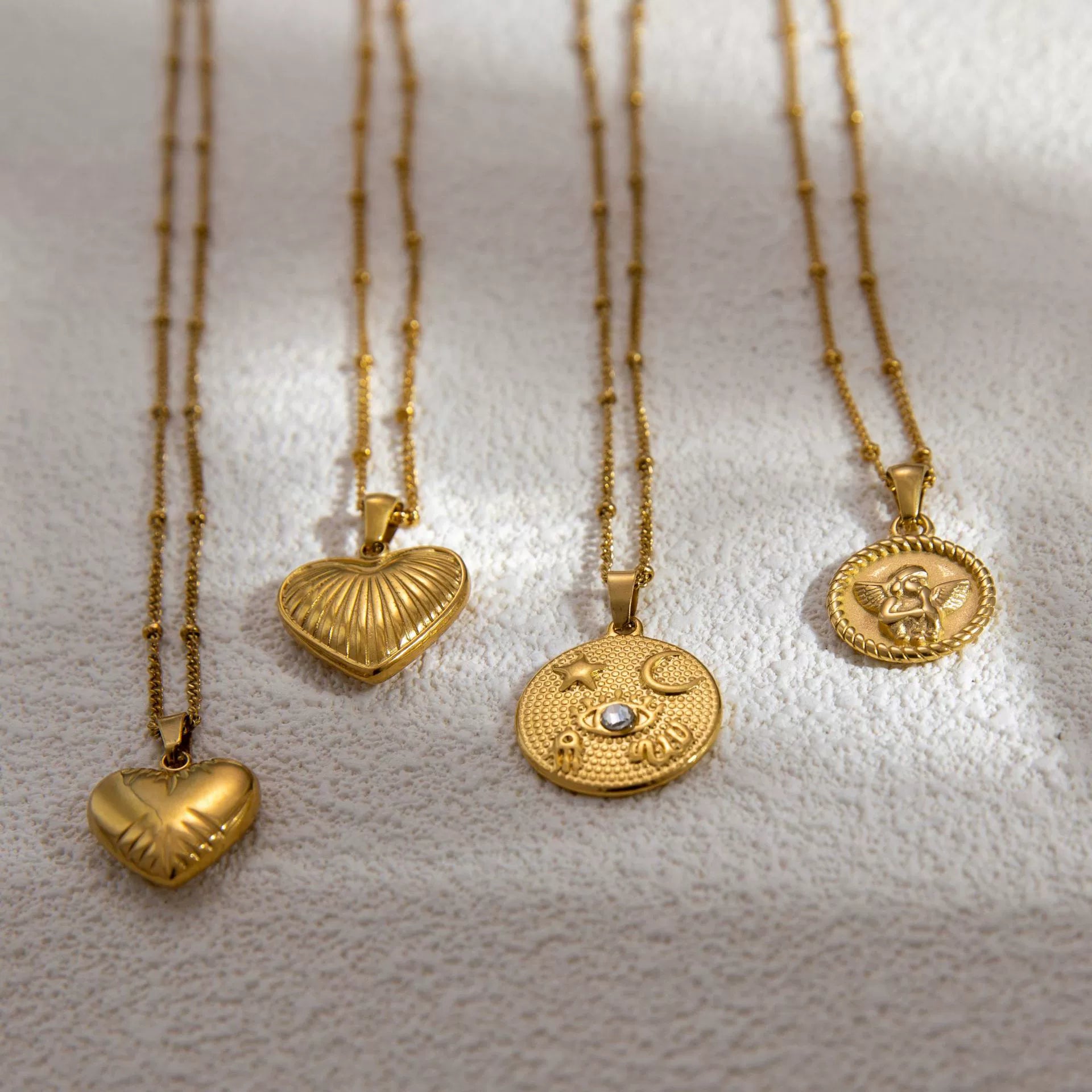 Necklace Clavicle Chain Titanium Steel Stainless Steel 18K Gold Electroplated Heart Stars Round Pendant Bamboo Chain
