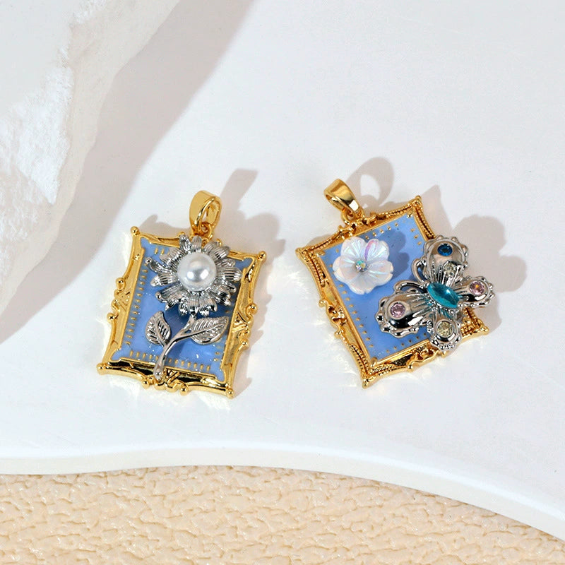 Necklace Pendant Imitation Pearl Flower Dripping Oil Painting Style