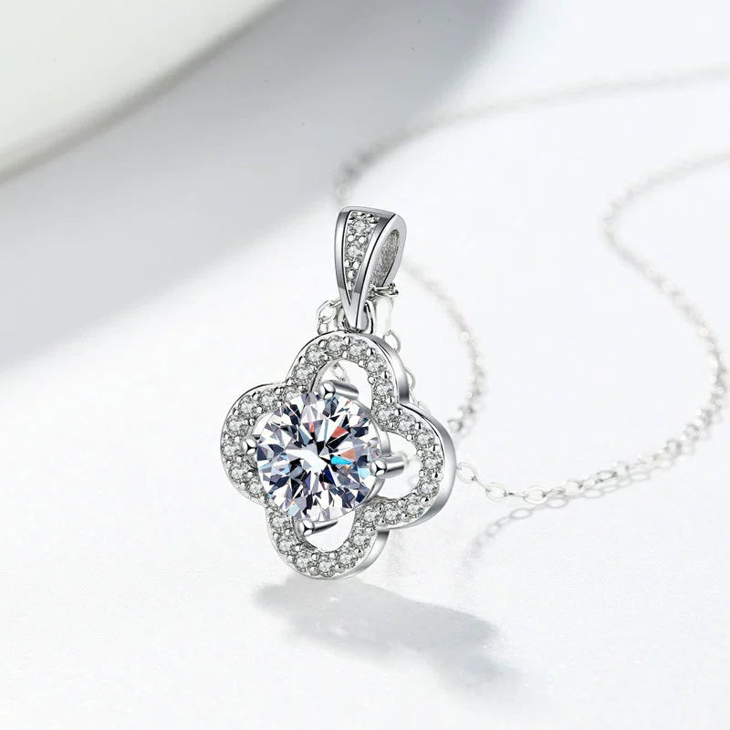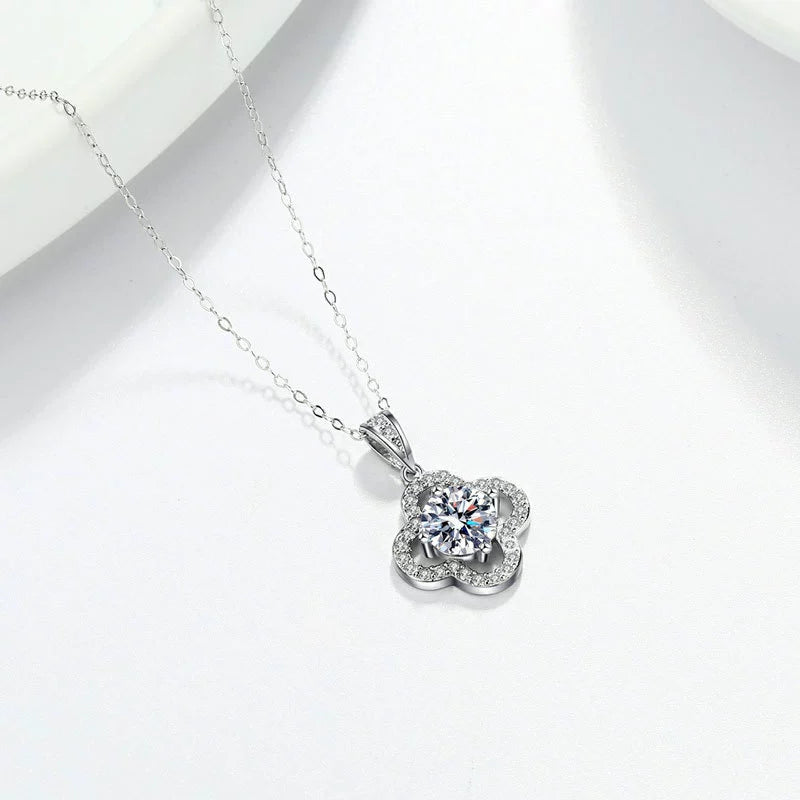 Necklace S925 Sterling Silver Four Leaf Clover Geometric Electroplated