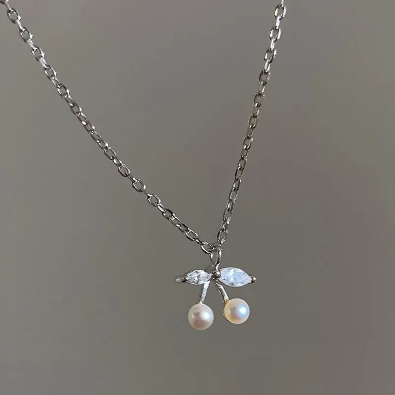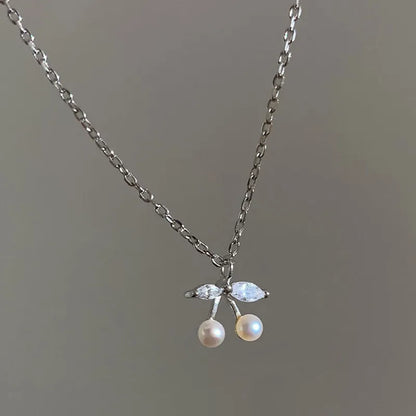 New Style Alloy Imitation Pearl Cherry Pendant Necklace