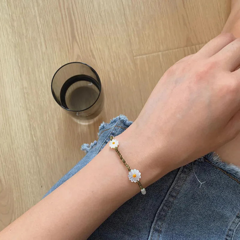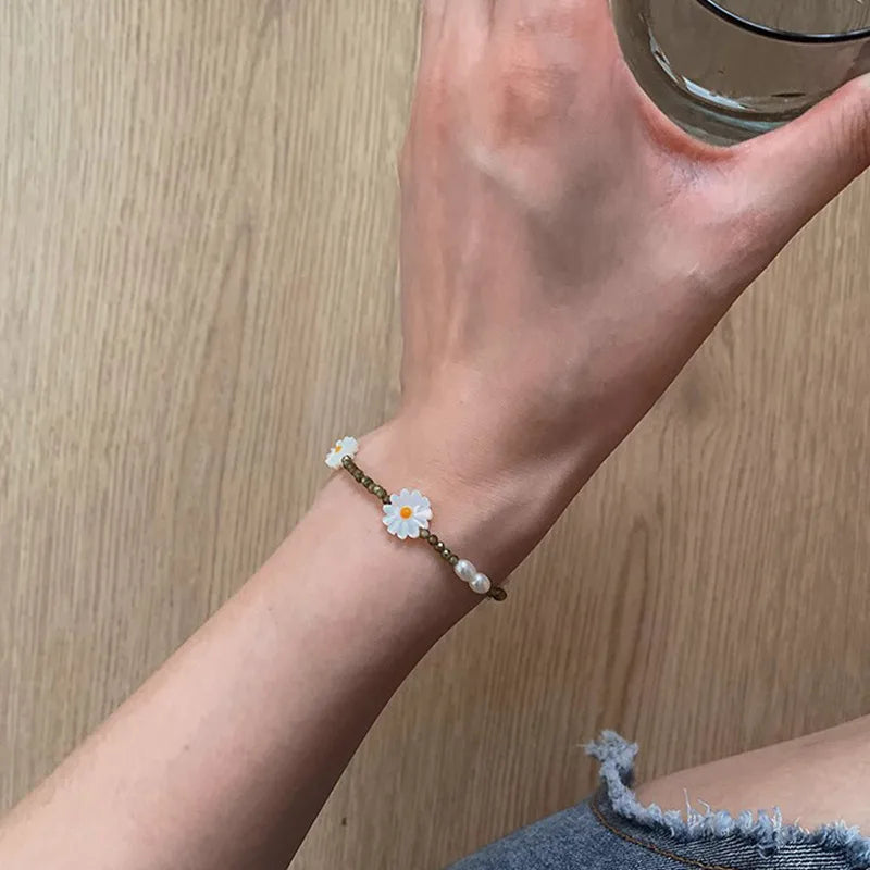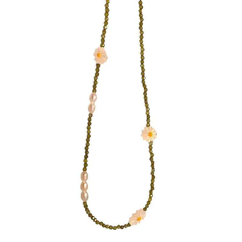 Pastoral Geometric Daisy Freshwater Pearl Sterling Silver Beaded Women'S Necklace