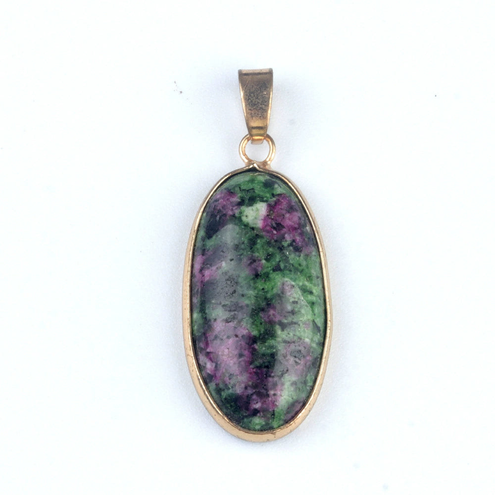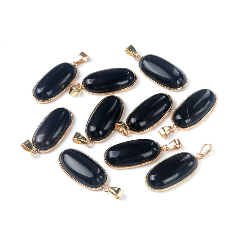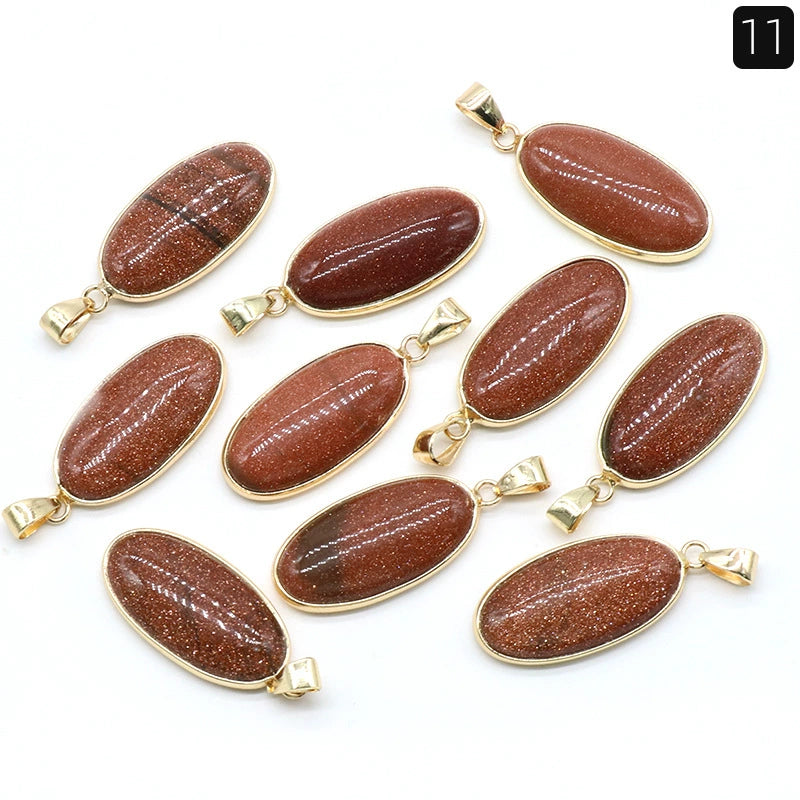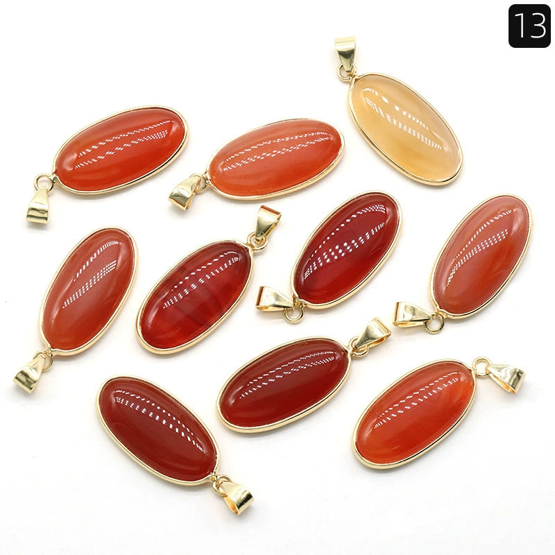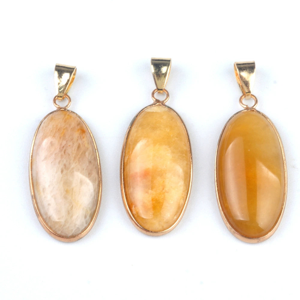 Pendant Necklace Natural Agate Crystal Semiprecious Stone Gilded Oval Polished Edging