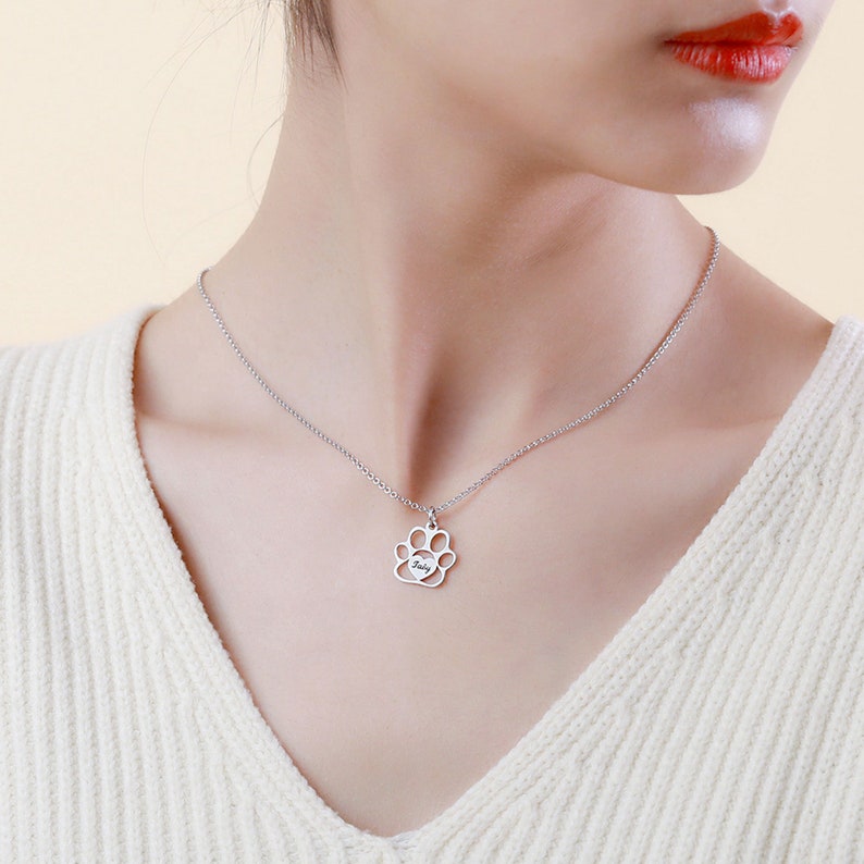 This beautiful necklace commemorates the pets in the family in a sweet and meaningful way. Pets are one of the family members and have important meanings for everyone in the family. If you are a pet lover, then this necklace will be very suitable for you. The middle of the paw is a love heart. The name of the pet can be customized on the love heart, so that the pet can be with you all the time!
