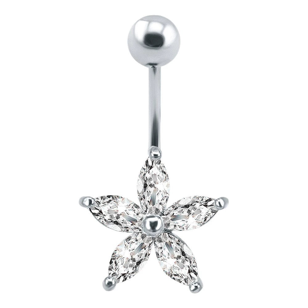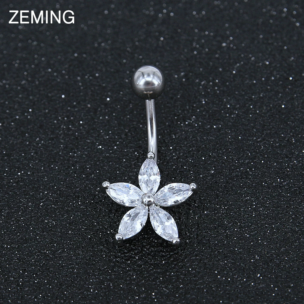 Piercing Jewelry Belly Button Ring Personality Flowershaped Stainless Steel Belly Button Nail Simple Zircon Navel Decoration Spot Wholesale