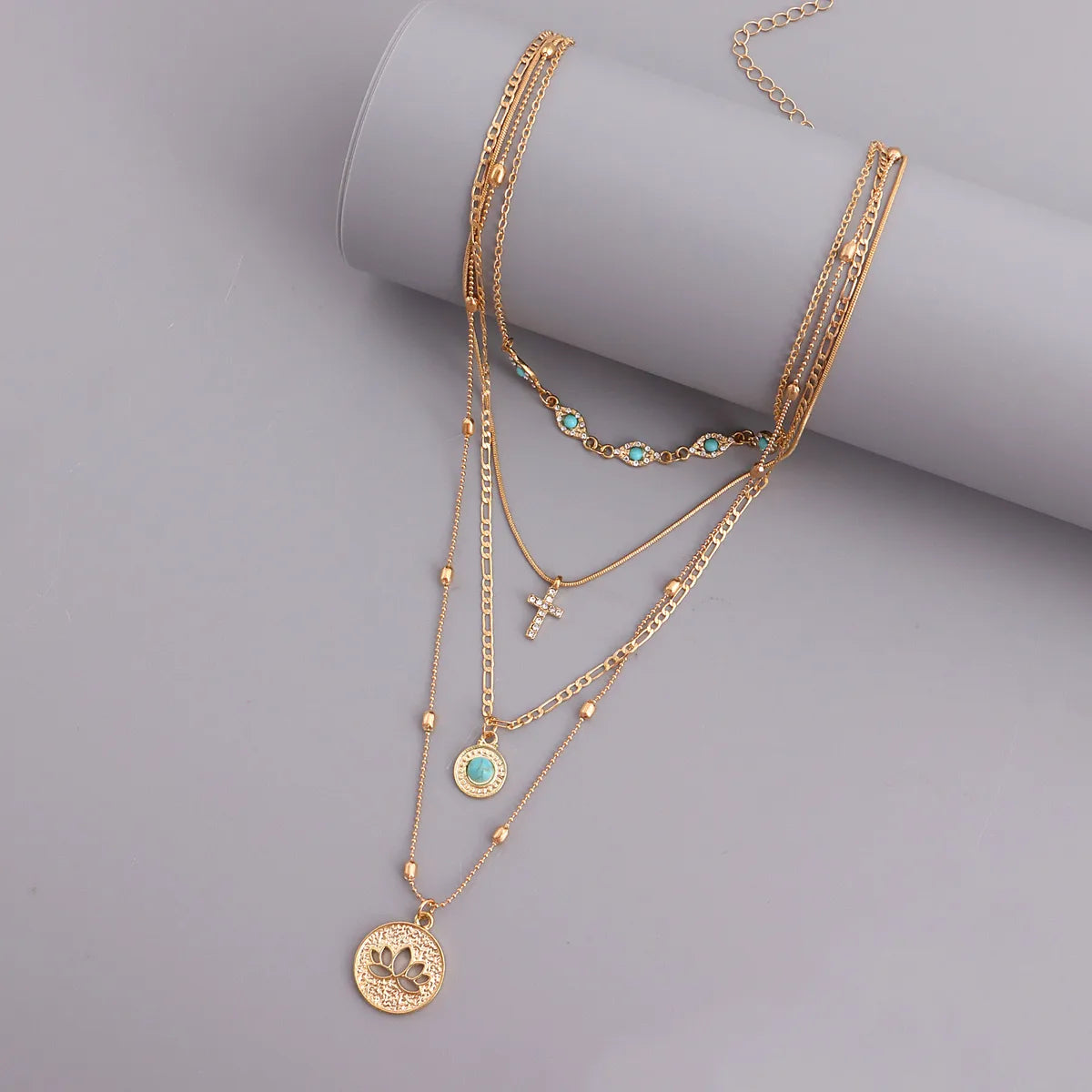 Retro Geometric Alloy Plating Inlay Turquoise Women'S Layered Necklaces