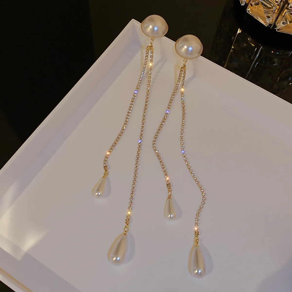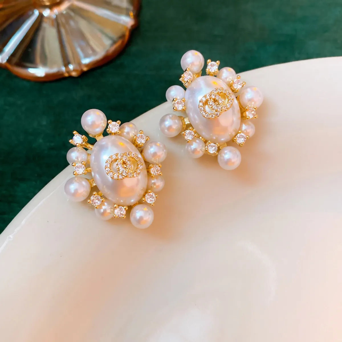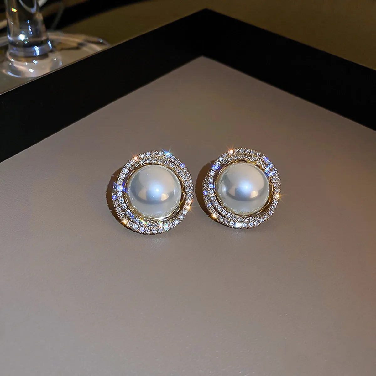 Retro Geometric Copper Inlay Artificial Pearls Zircon Ear Studs 1 Pair
