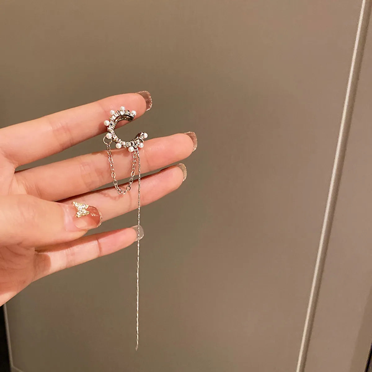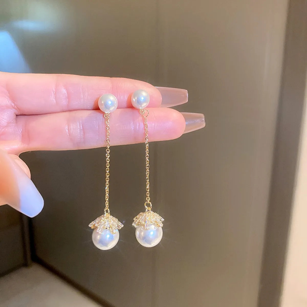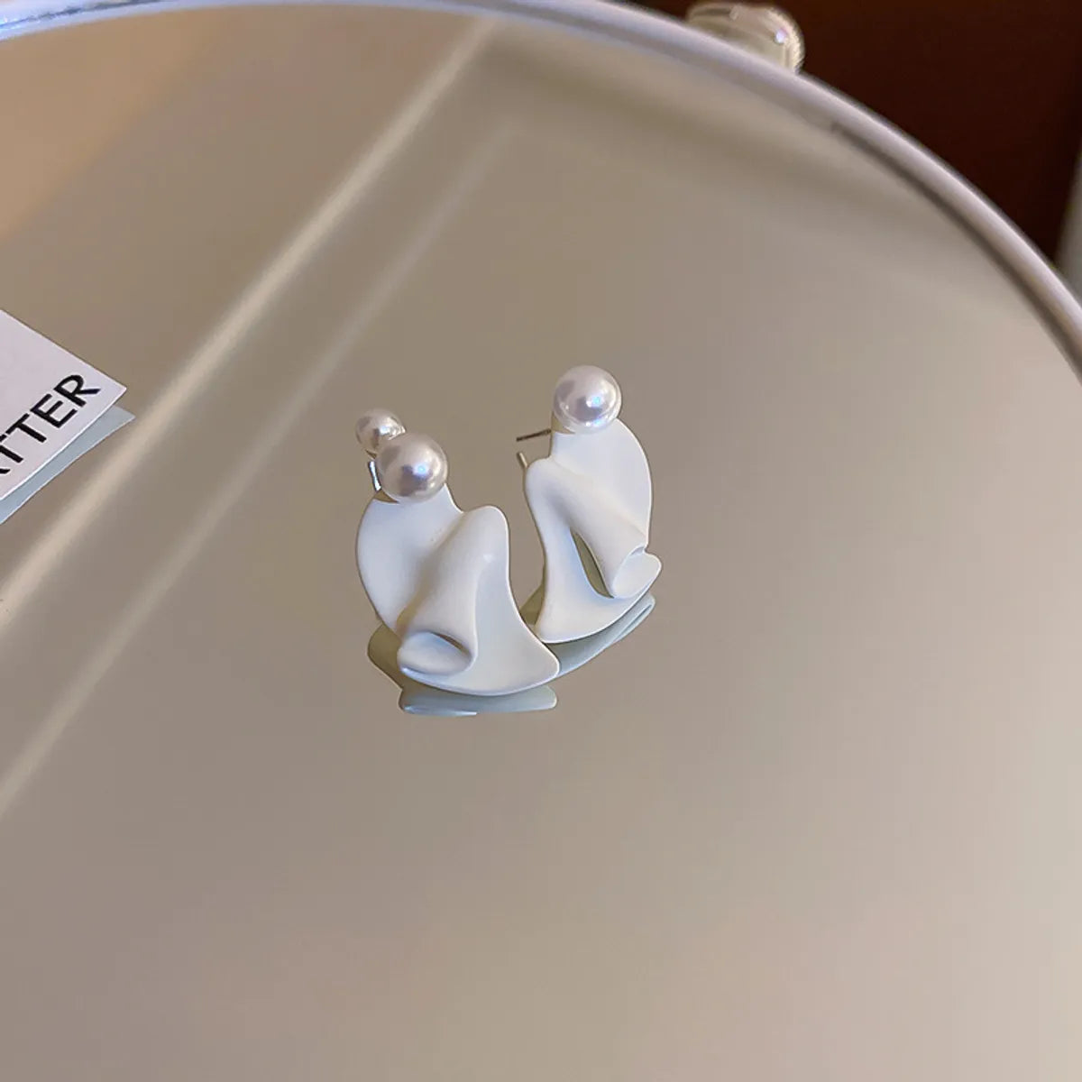 Retro Geometric Copper Inlay Artificial Pearls Zircon Ear Studs 1 Pair