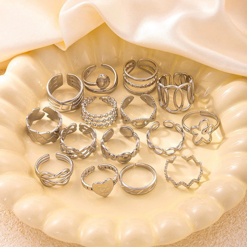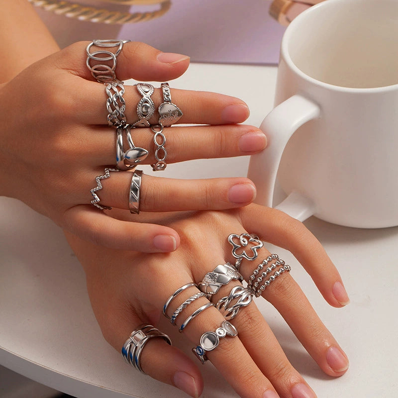 Retro High Grade Titanium Steel Niche Chain Hollow Flower Heart Shaped Love Ring With Electroplating Multi Layer Unisex Ring