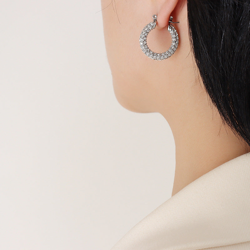Retro Round Titanium Steel Earrings Plating Rhinestones Stainless Steel Earrings 1 Pair